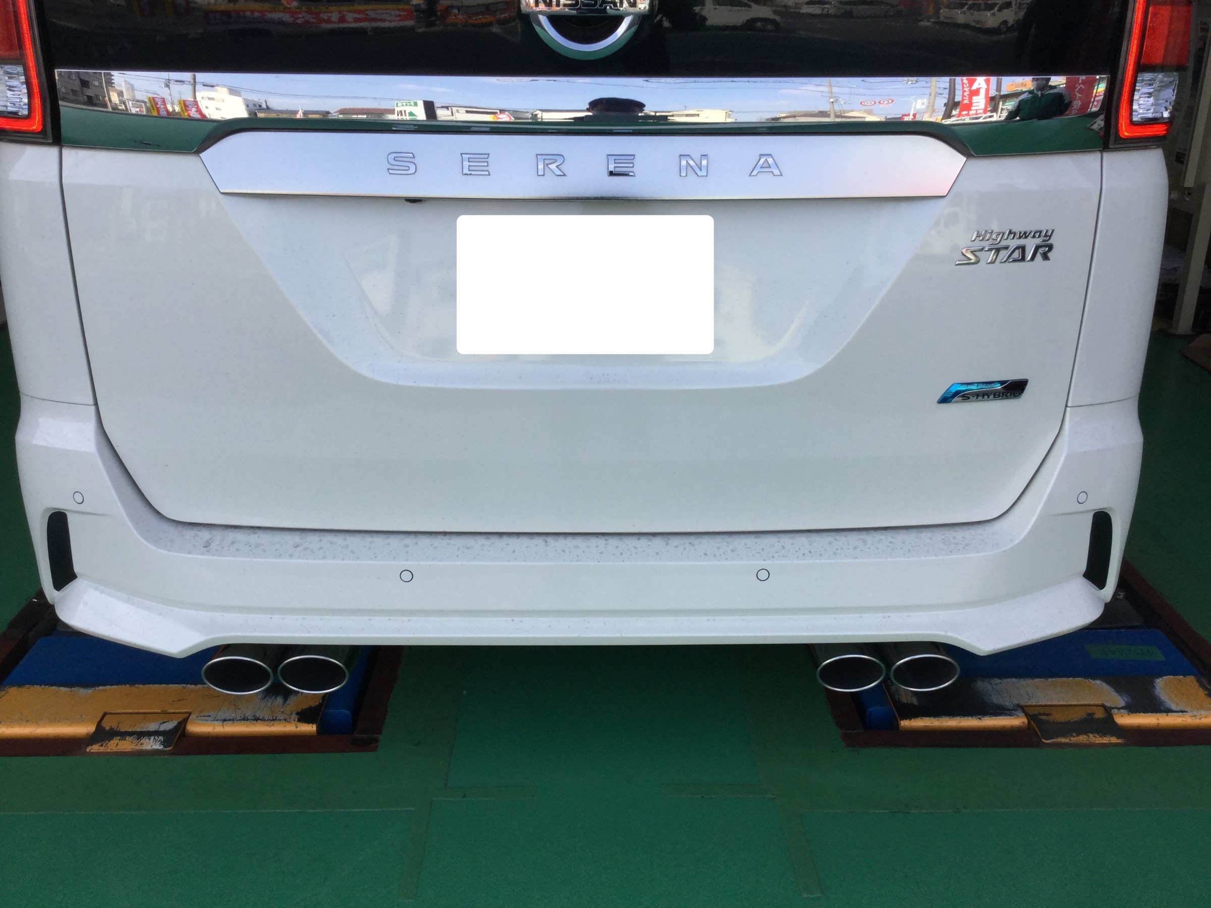 先日、当店ではセレナにフジツボのマフラーをお取付させていただきました!