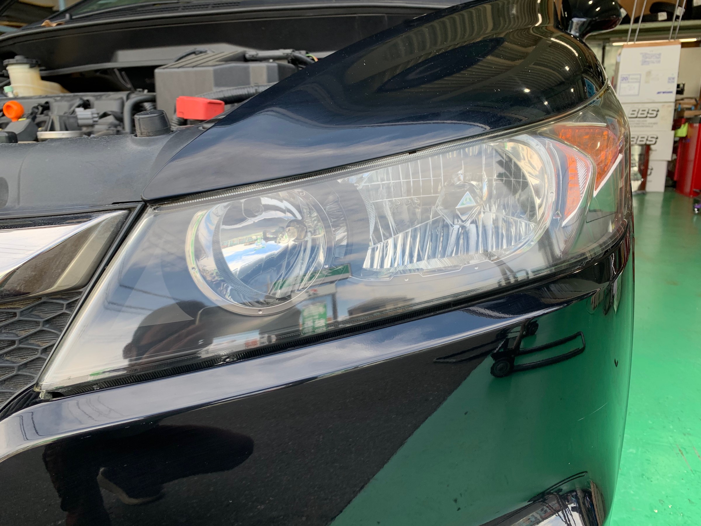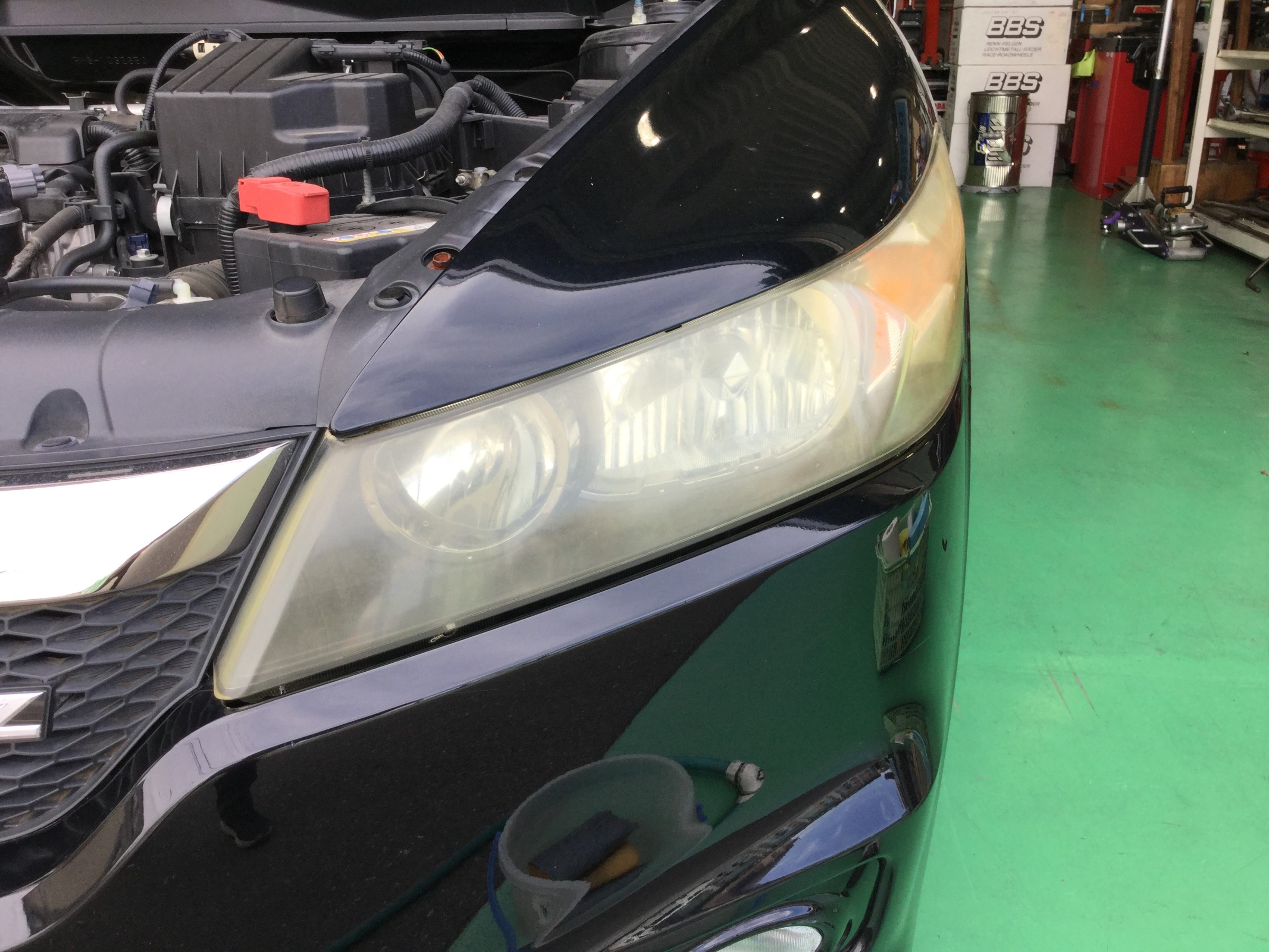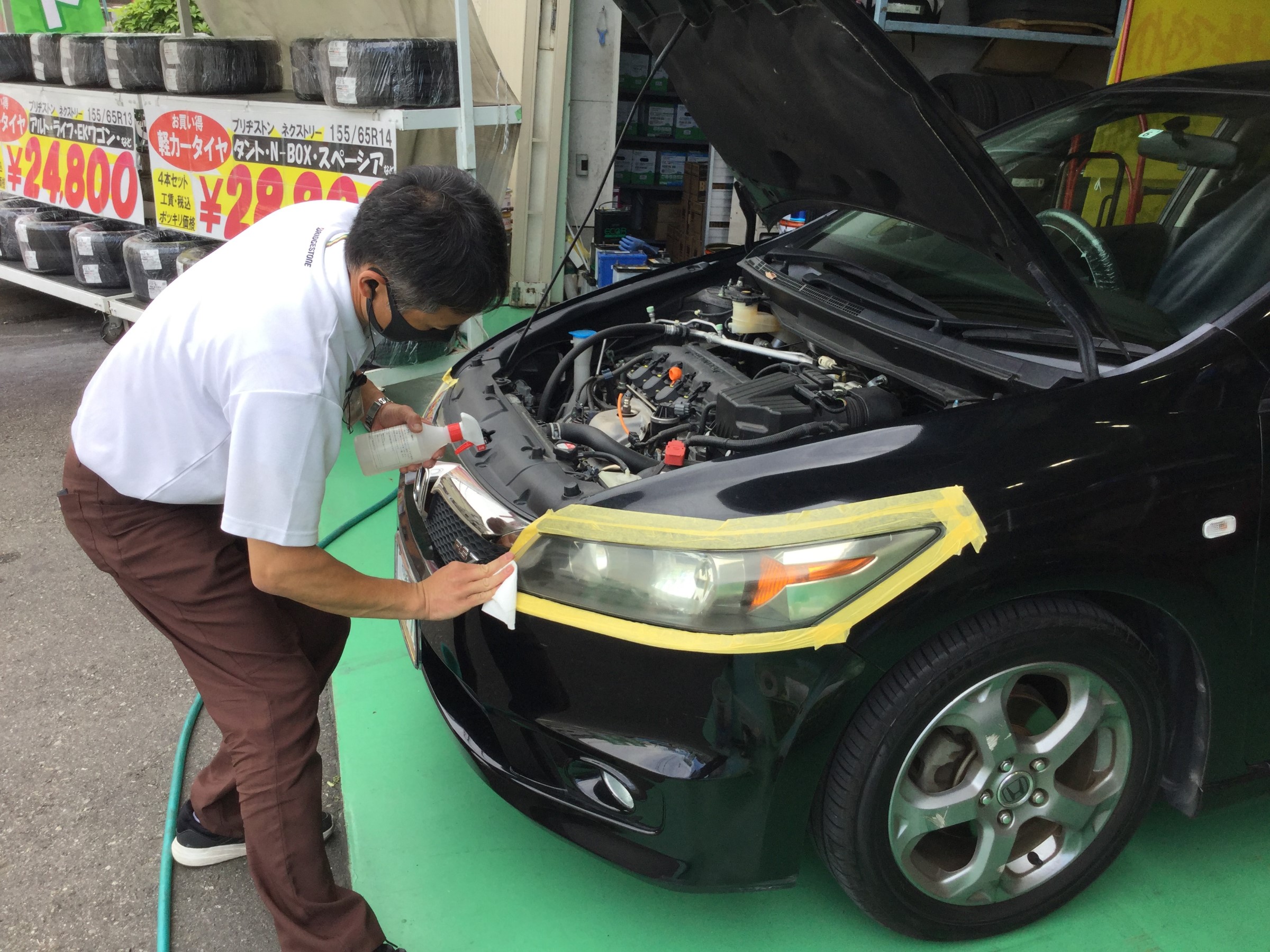 先日空気圧点検に来店いただいたお客様からご依頼を受けましてヘッドライトレンズクリーナーを施工