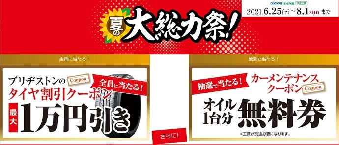 メンテナンスはオイル1台分無料券(抽選)やサービス1000円OFFやサービス500円OFFなどなど