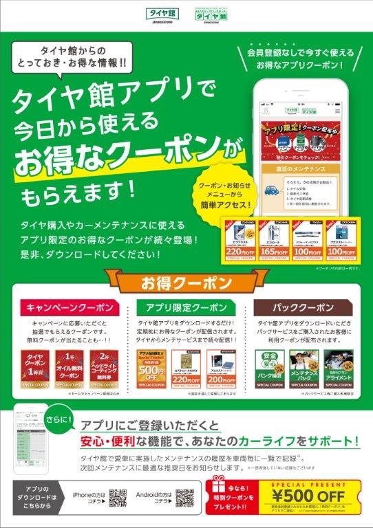 タイヤ館アプリをダウンロードするとお得なクーポンが盛りだくさん‼️