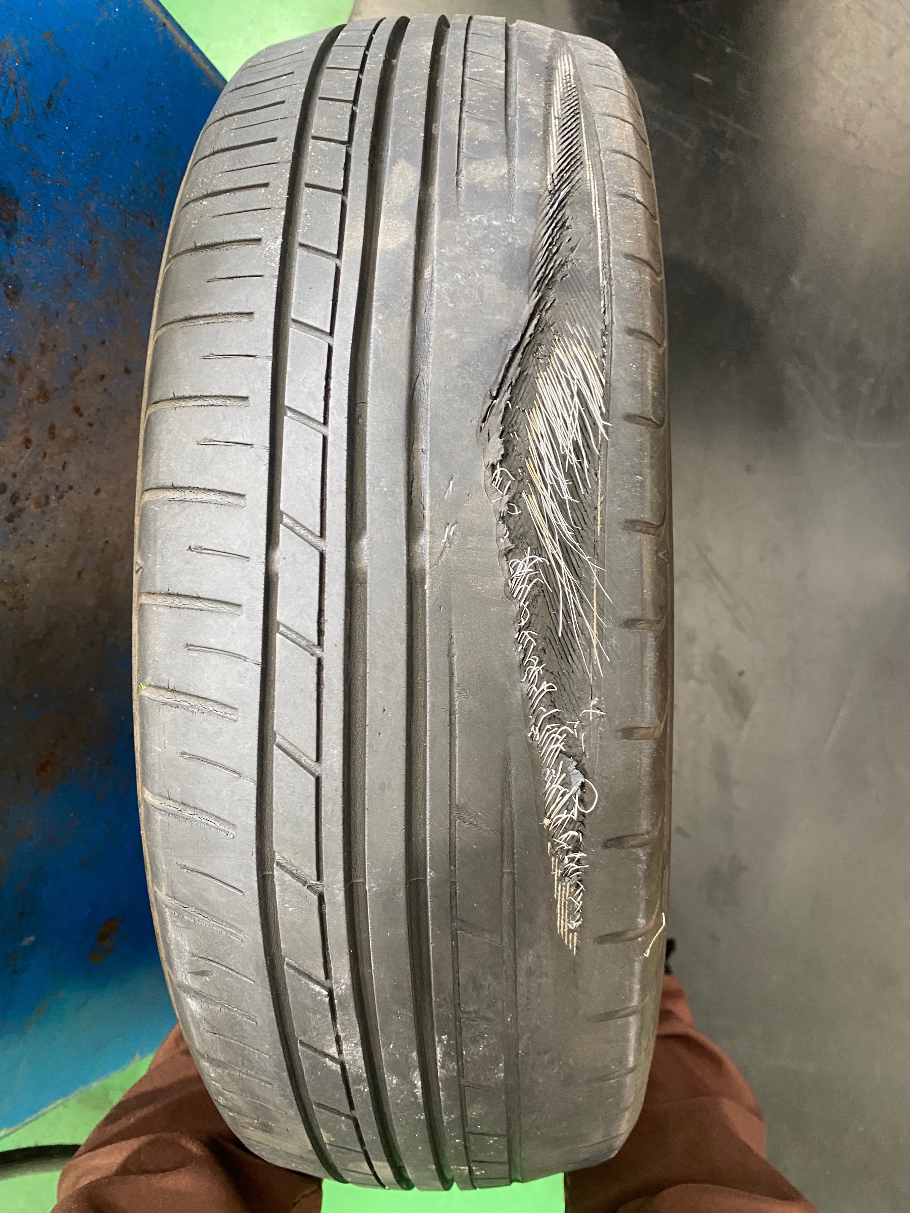 走行距離が約90,000km、タイヤの外側からの衝撃、バーストされていました。