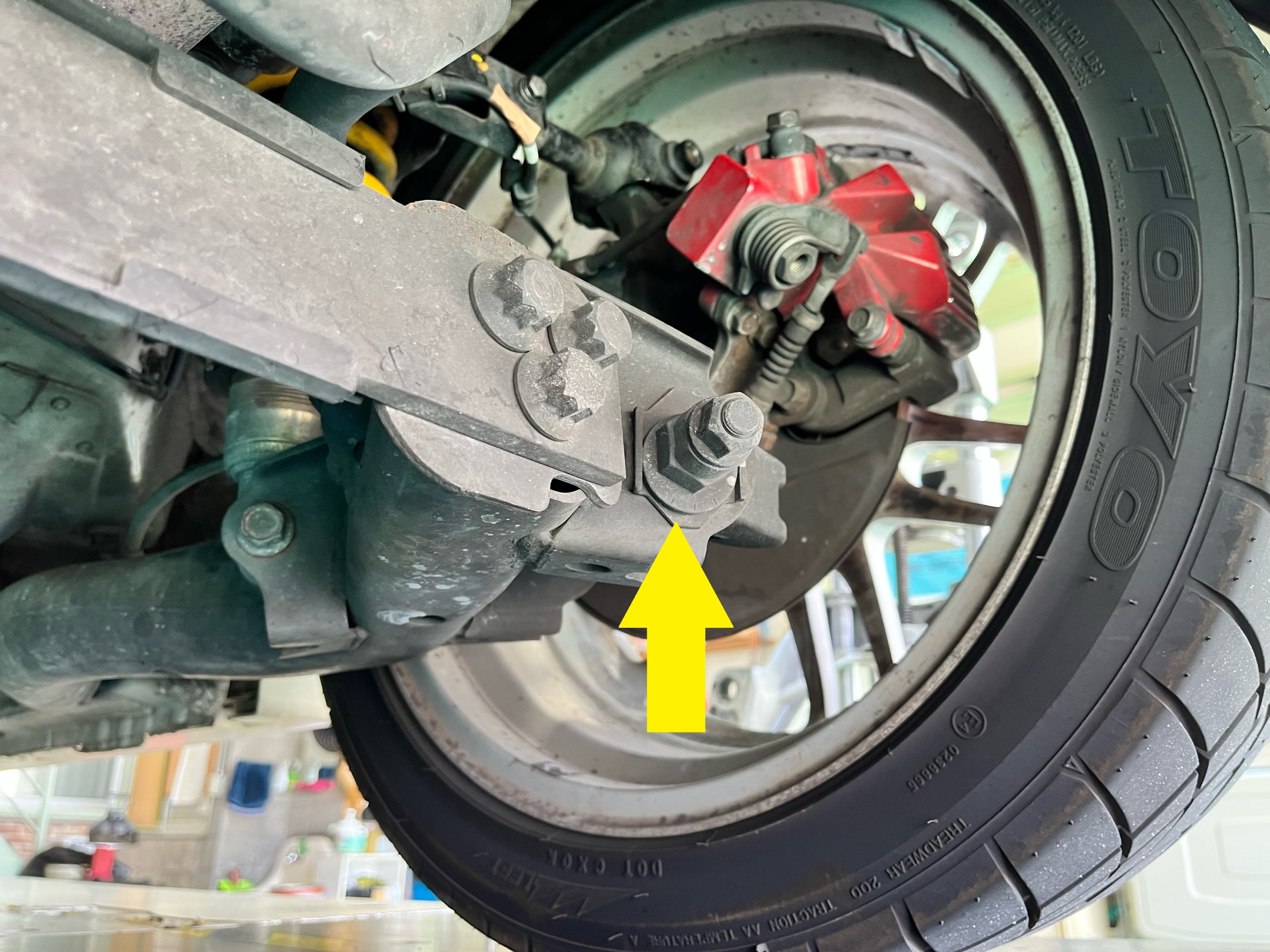リアトー調整は黄色い矢印の所になります。