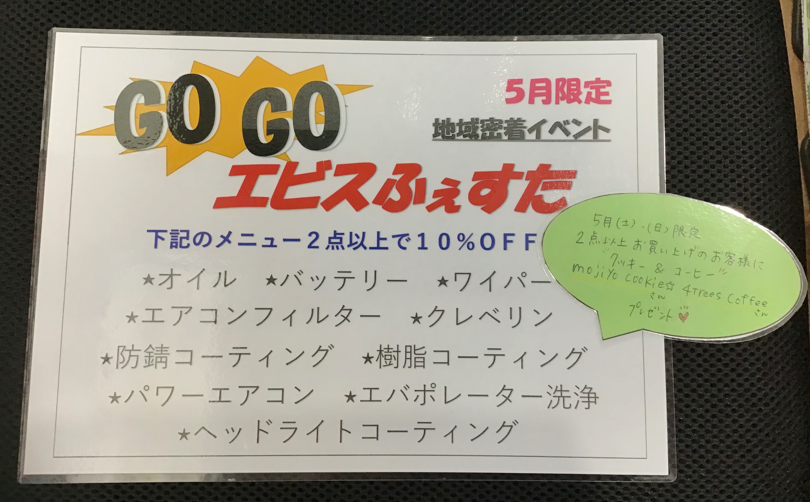 本日から5月末まで地域密着イベント【GO!GO!エビスふぇすた】開催です(^^)/