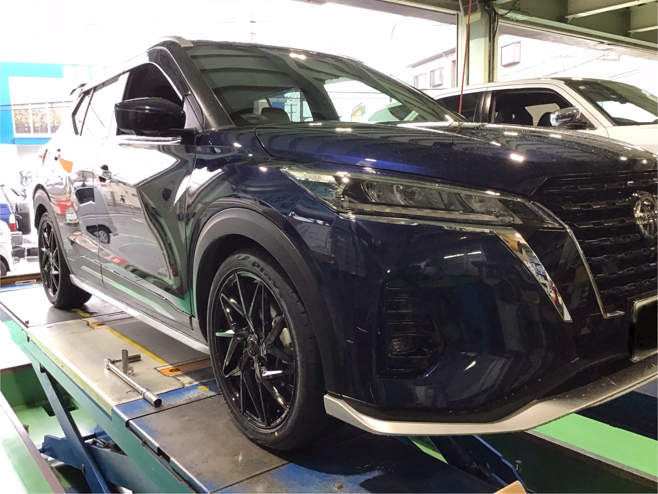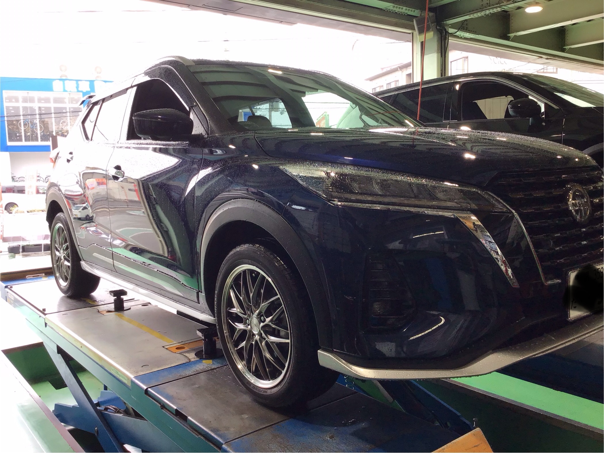 本日は、キックスe-POWERにダウンサス交換、18インチホイールセット取付させていただきました。