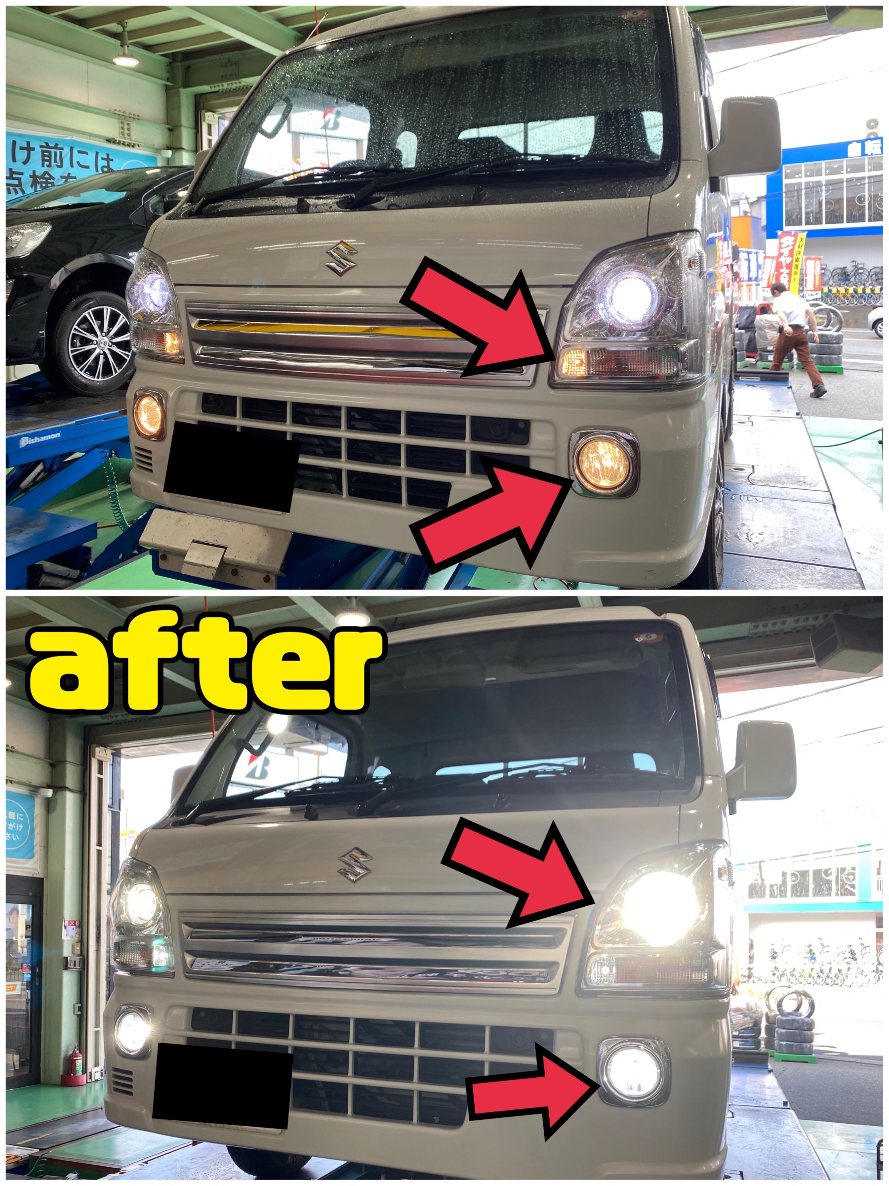 スーパーキャリイ タイヤ交換&フォグランプ、ポジションランプ交換‼