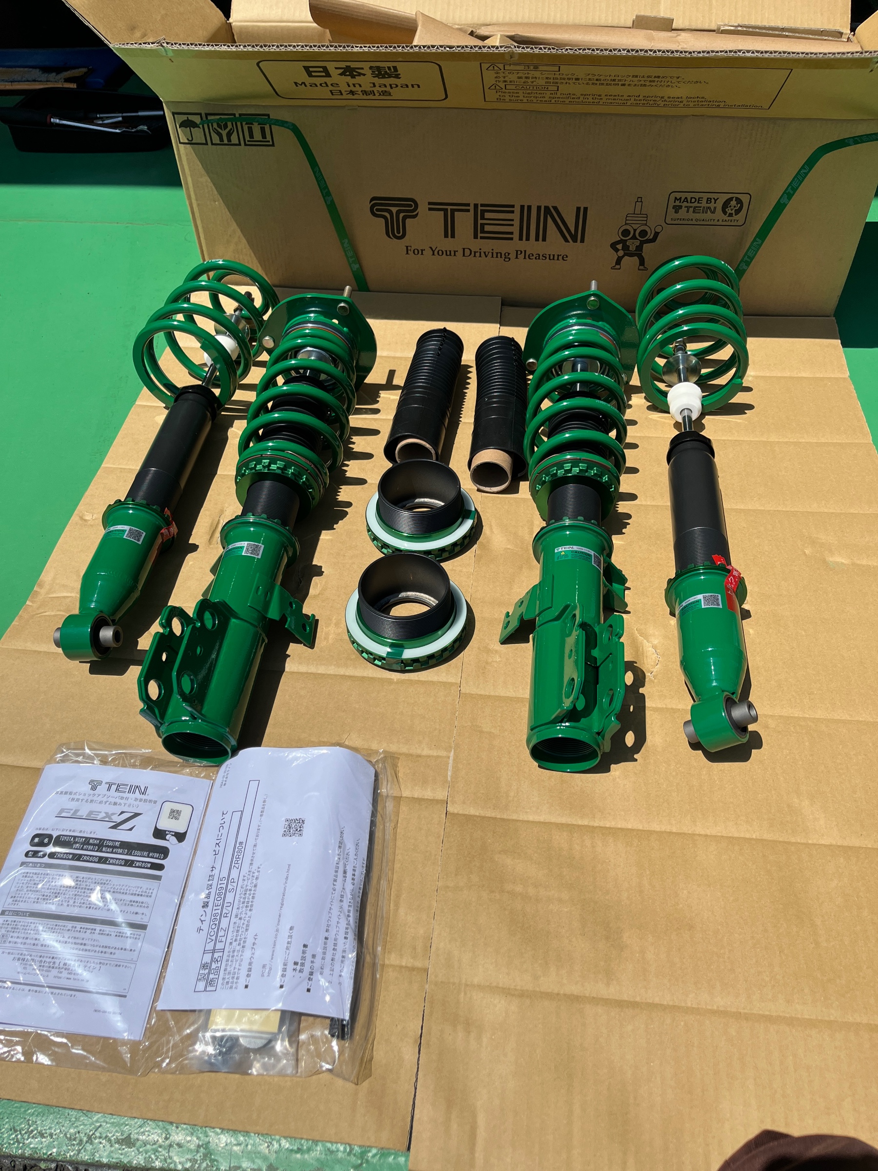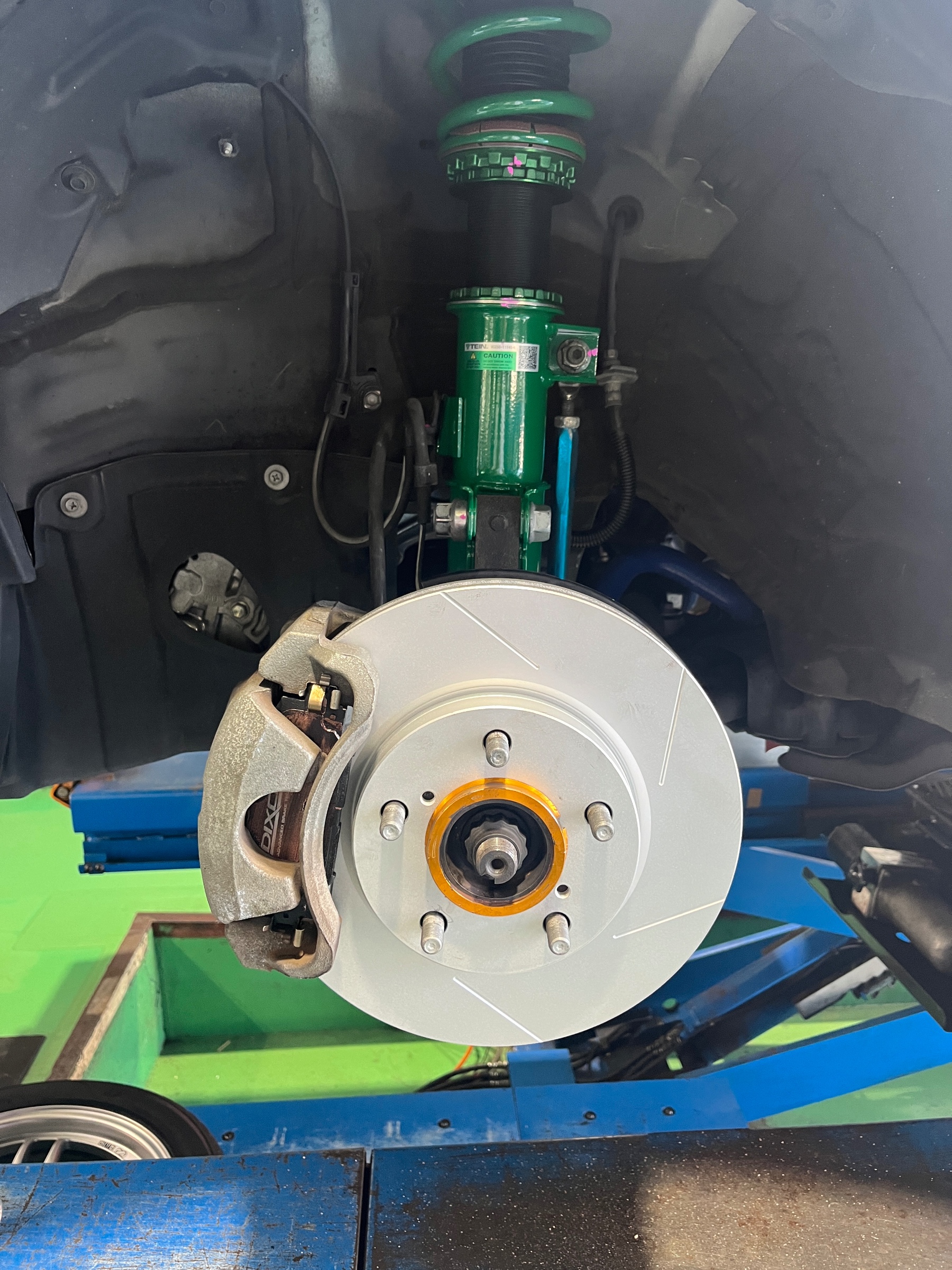 車高調、ブレーキパッド、ブレーキローター、ブレーキフルード、タイヤ)の交換をご依頼いただきました。
