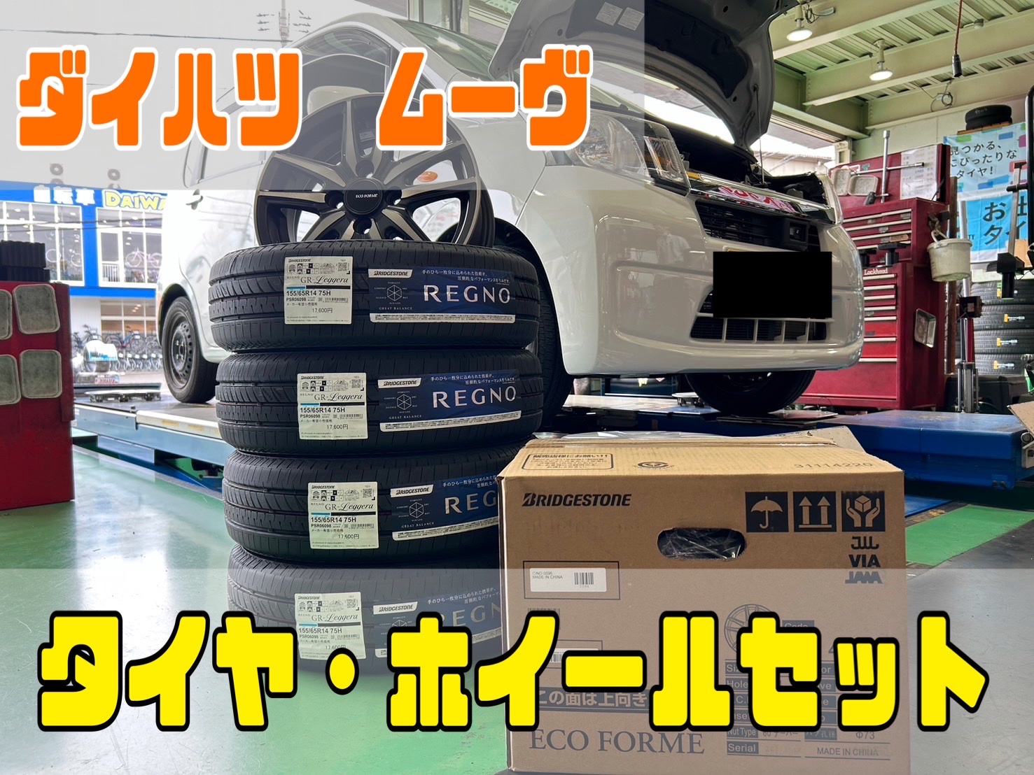 ムーヴ タイヤ、ホイールセット取り付け!