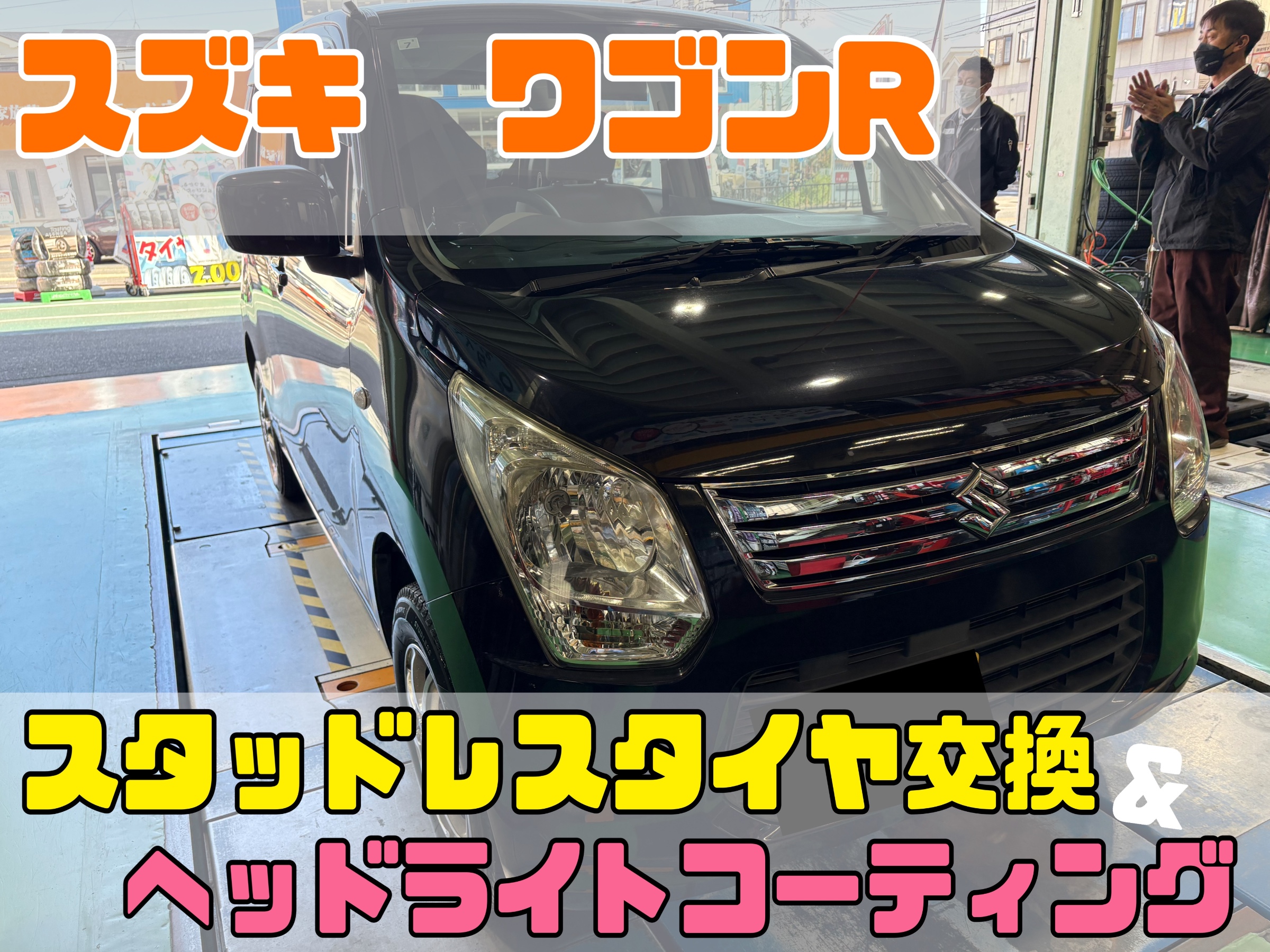 本日は、スズキ ワゴンRのスタッドレスタイヤ交換&ヘッドライトコーティング施工(≧◇≦)