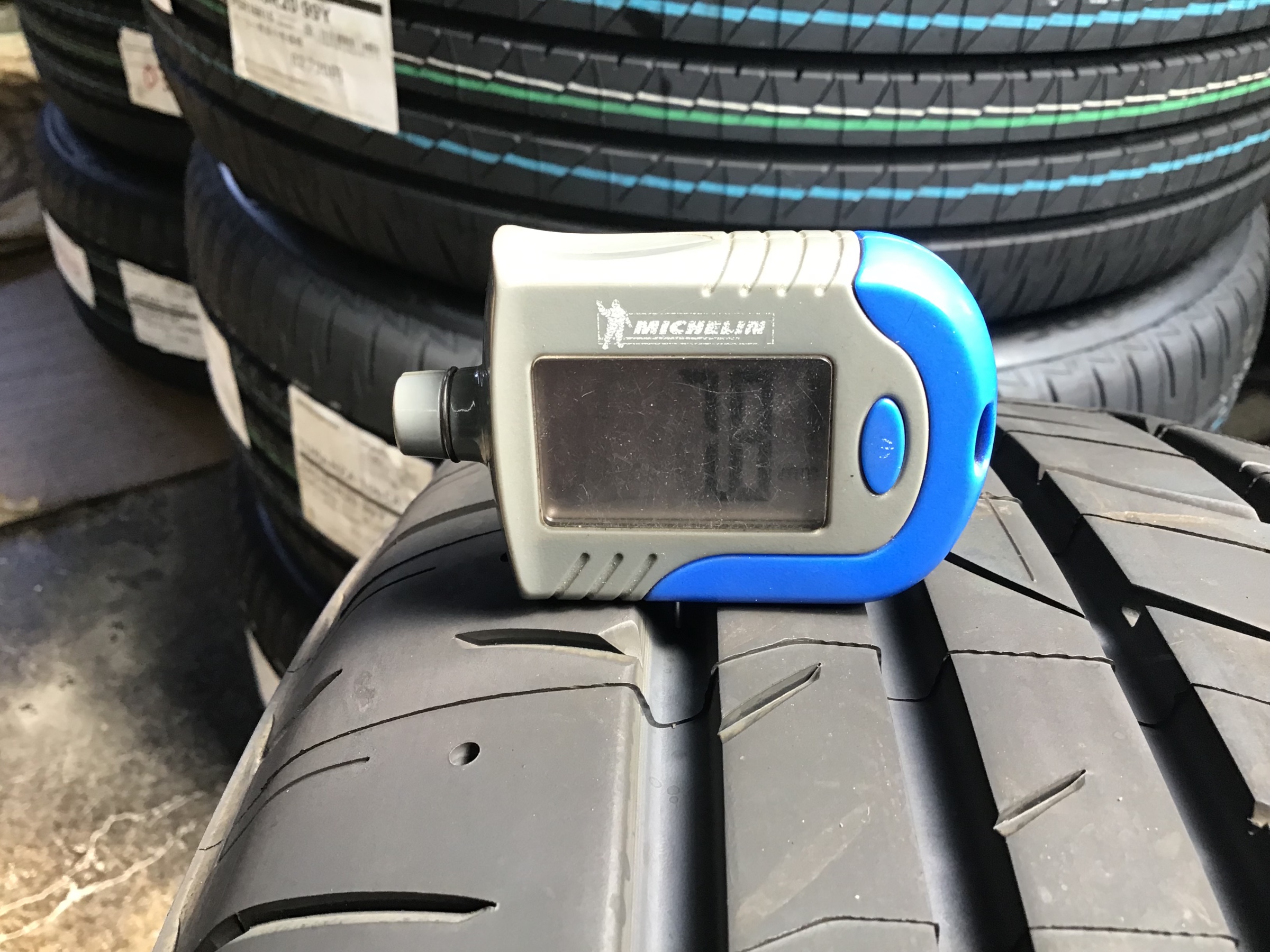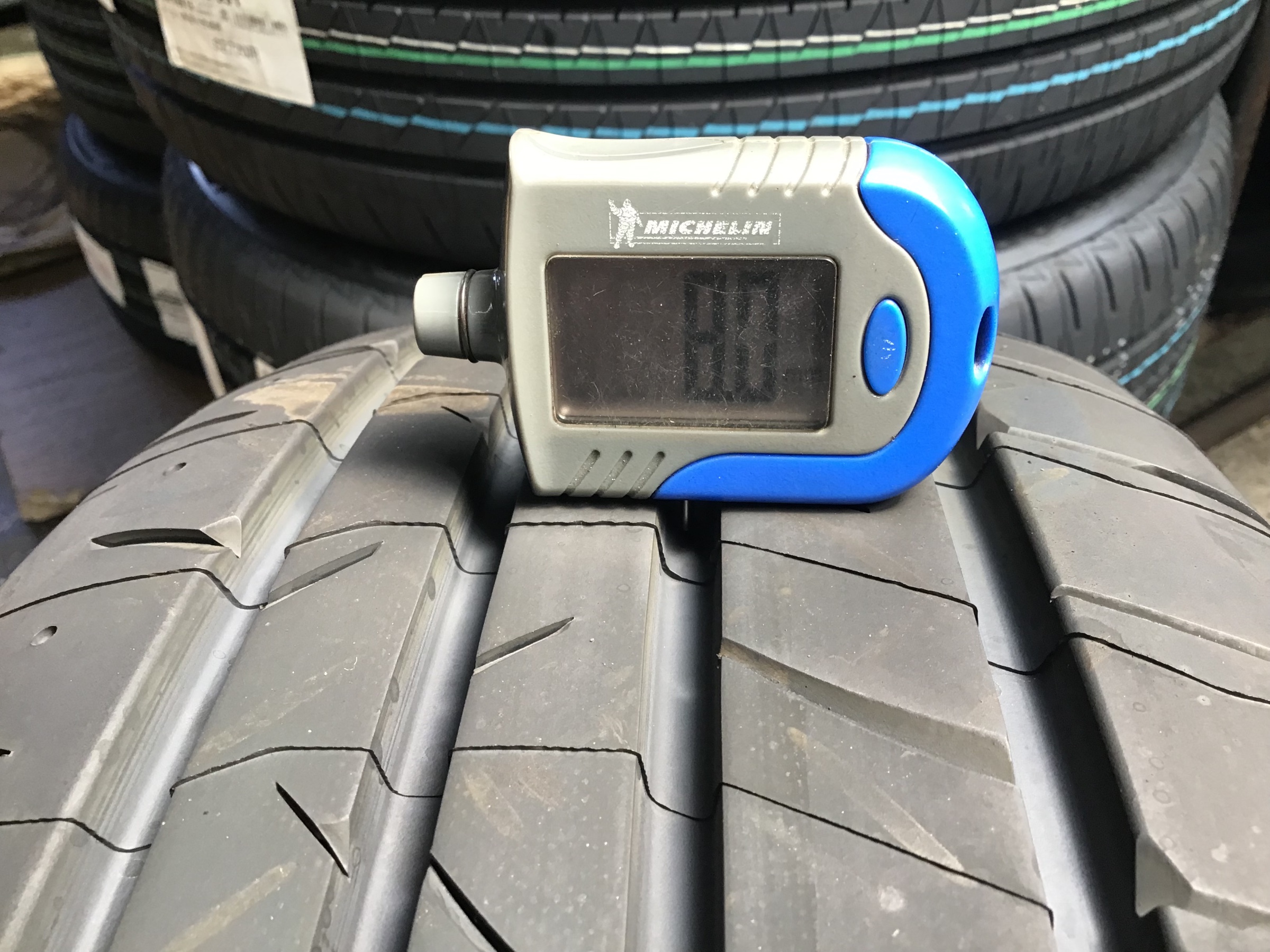 新品時の残溝の数値でございます(全てのサイズに当てはまりません)