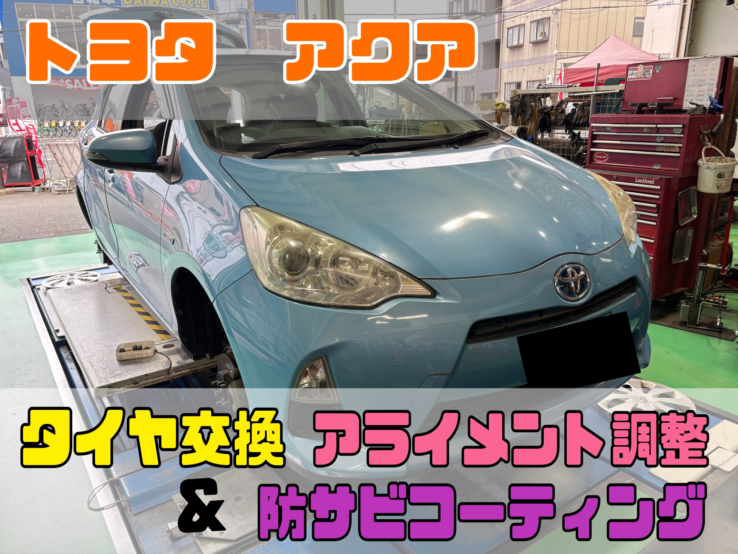 アクア タイヤ交換、防錆コーティング、アライメント調整!