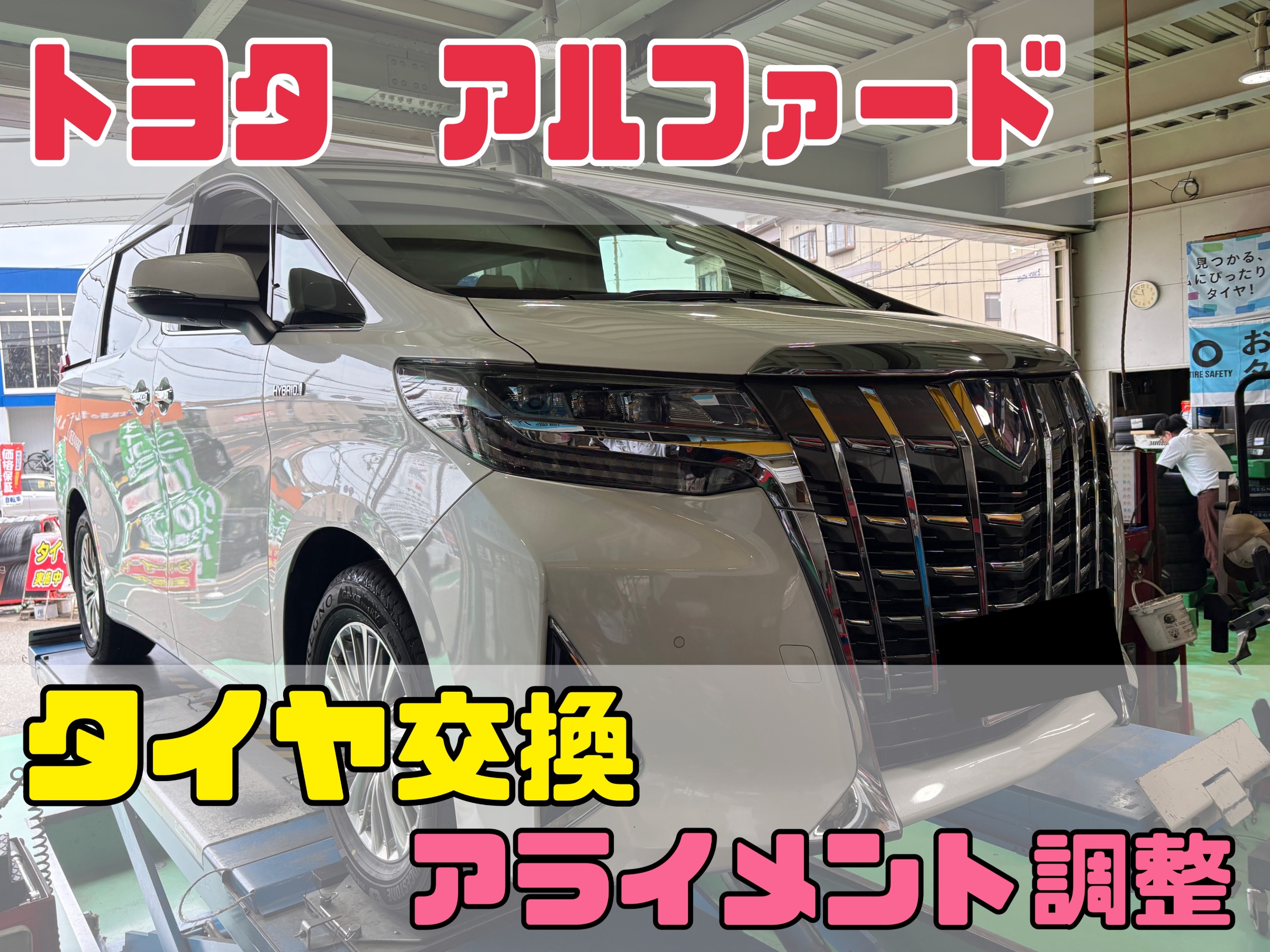 アルファード タイヤ交換、アライメント調整!!