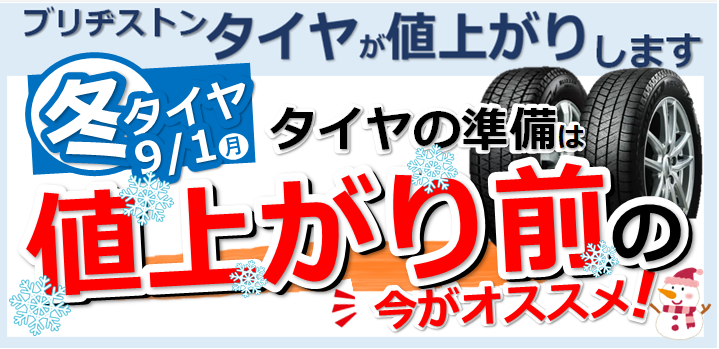 9月1日からスタッドレスタイヤが値上がりとなります。