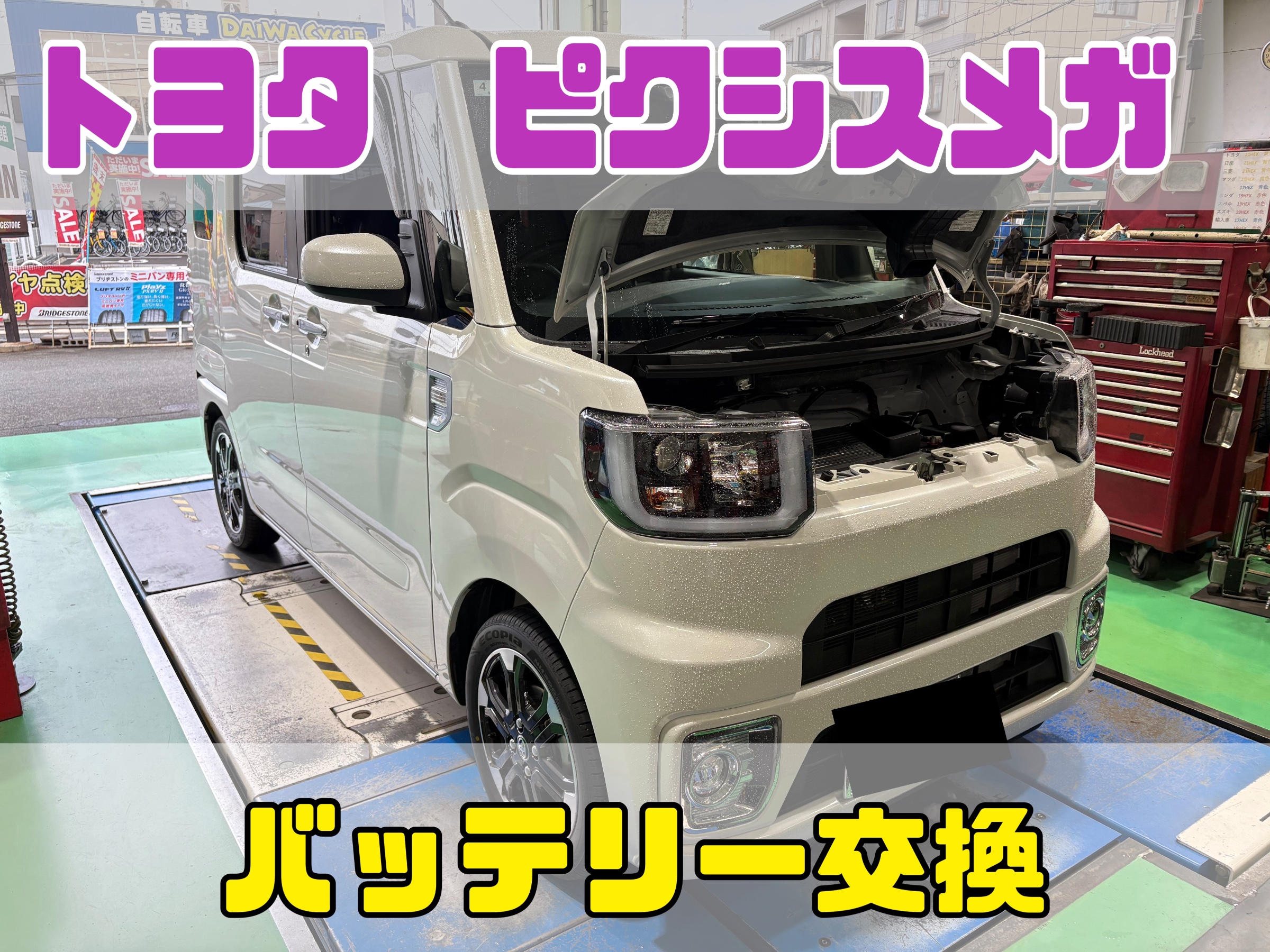トヨタ ピクシスメガのバッテリー交換です(^_-)-☆