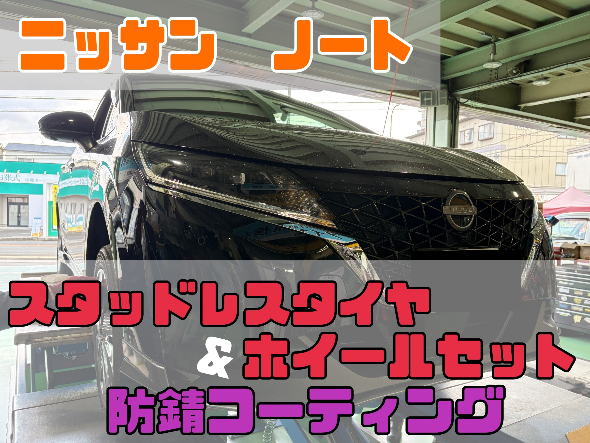 本日は、日産 ノートのスタッドレスタイヤ・ホイールセット取り付けです(^_-)-☆