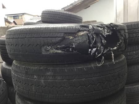 バーストしたタイヤ ポスト 2016年9月5日 先月に続き今月もなんですが、タイヤのバーストで来られる方が多いです。 そのほとんどが、製造年数から6年〜8年経ったタイヤです。 溝は残っていても年数が古く劣化してるものは、画像のようになるケースが非常に多いです。 皆さんも目に見えるほどのヒビ割れがタイヤにでていれば要注意!! 出先でのトラブル・事故等になる前に交換を!!