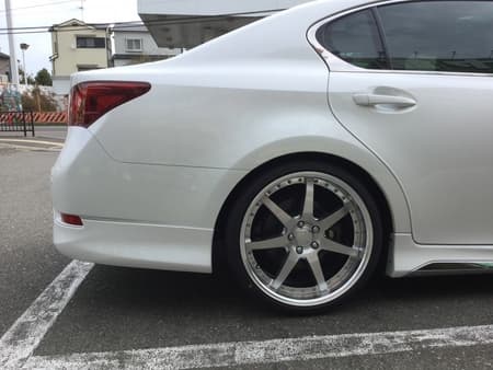 フロント 8.5J リアが9.5Jの前後違いのサイズです。インセットは内緒で笑