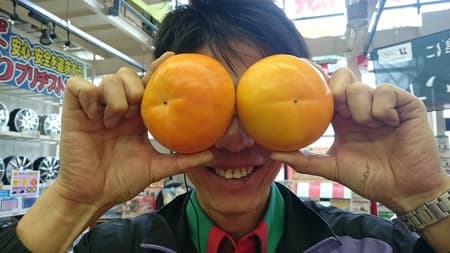 お土産に、店長の顔が隠れるぐらいの立派な富有柿を沢山頂戴し