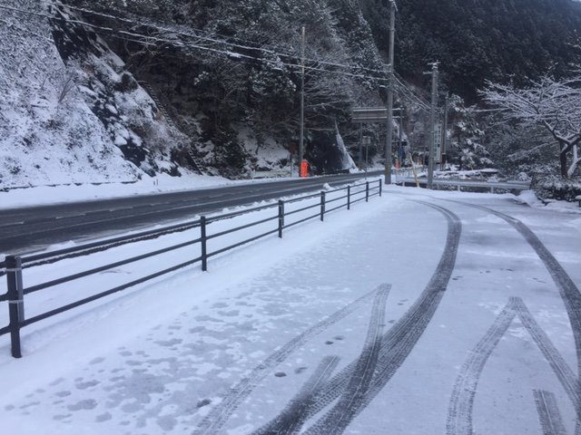 案の定、天辻峠は積雪・凍結しまくりでした。