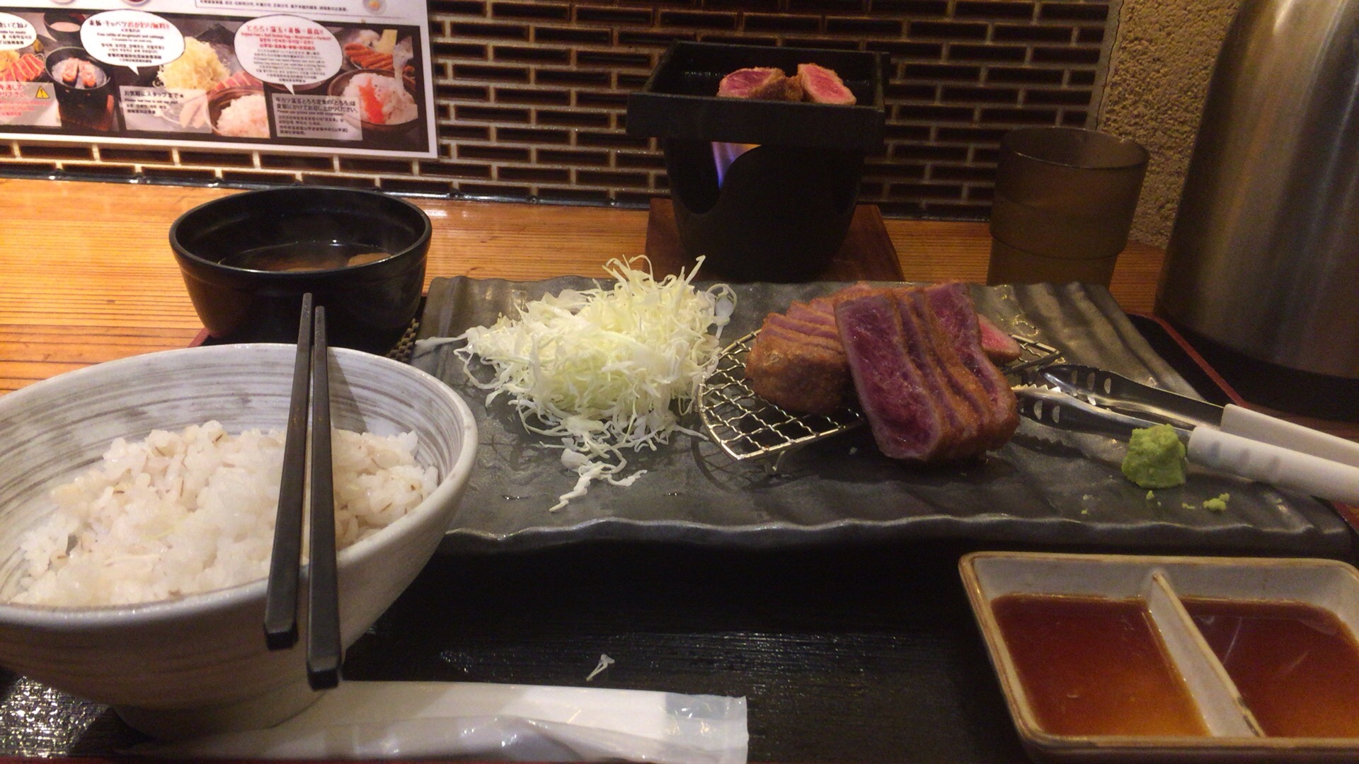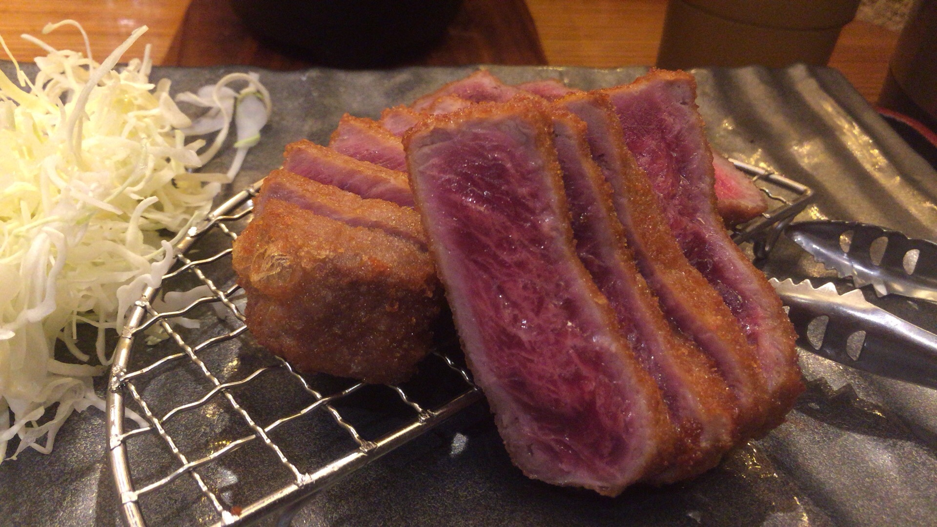肝心な牛カツは口の中でめちゃくちゃトロけて美味しかったです。わさびとにんにく醤油を合わせればさらに美味しく!!