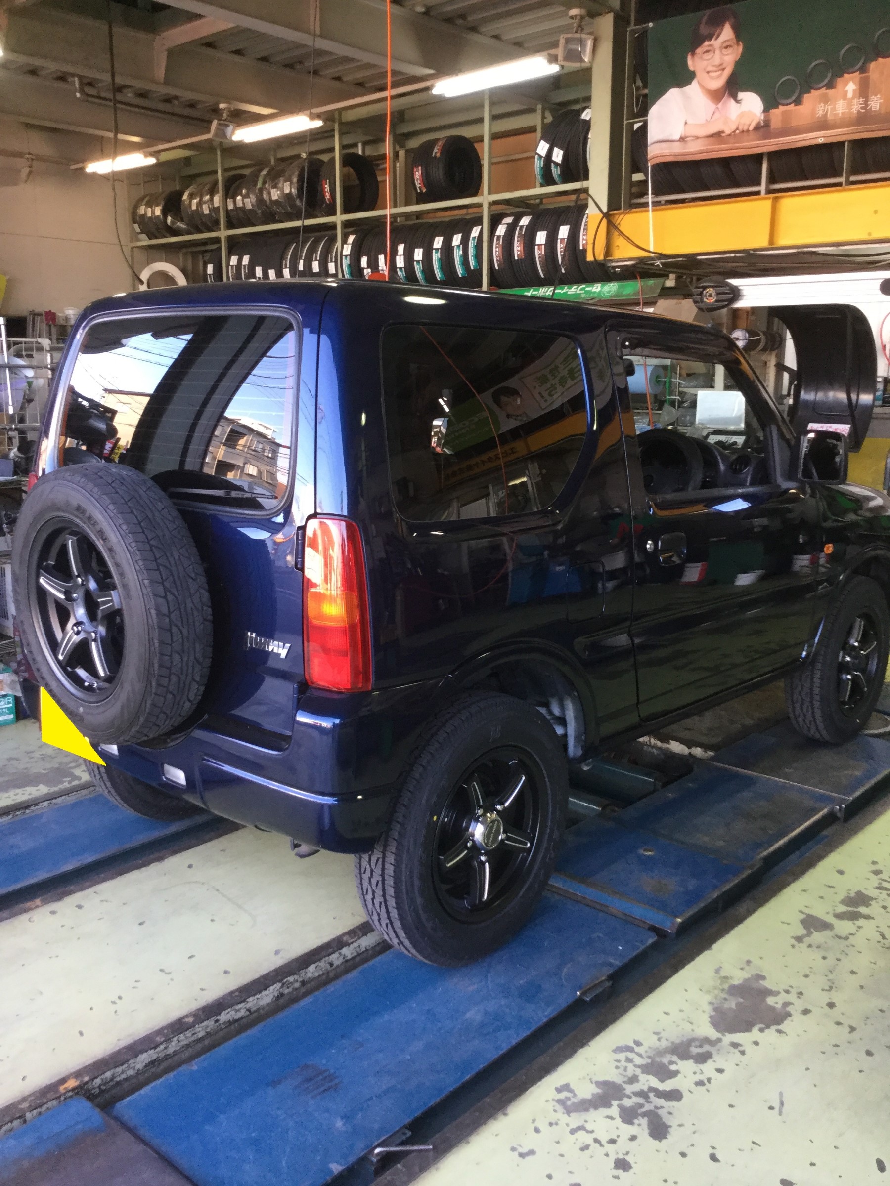 ジムニーJB23Wホイールセット装着 ポスト 2017年4月29日 B アーバンスポーツNRのブラックに新商品デューラーA/T001でセットさせていただきました。 スペアの背面ホイールも含めてお買上げ頂いたんですが、 通常ジムニーのスペアタイヤは表面が車のボディ側に付いて、 そのままやと折角のアルミホイールが見えないんですが、 延長ボルトを使って、いい感じに仕上がりました。(^-^) N様、いつもありがとうございます。 担当:ワダ