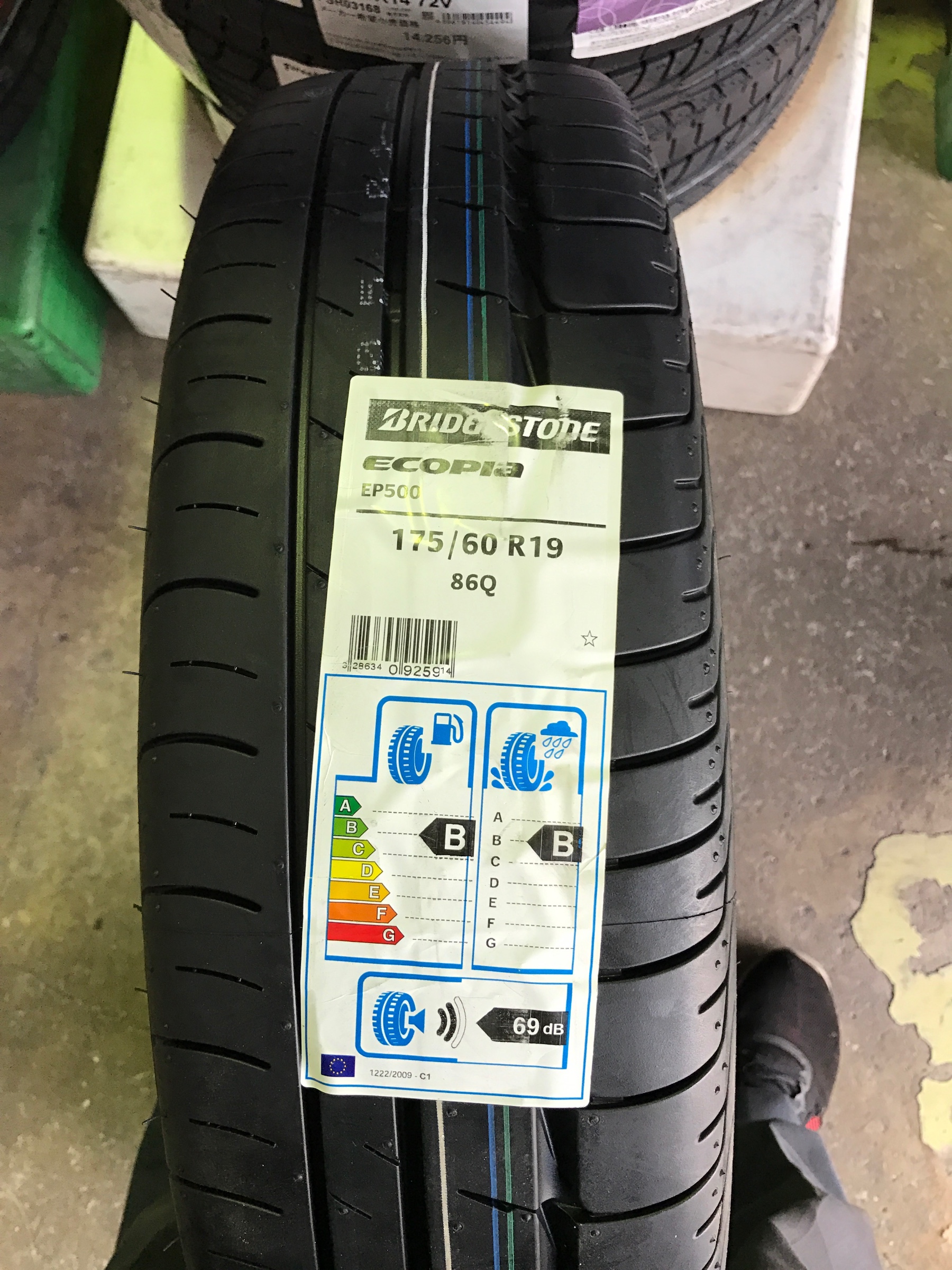 このタイヤBMWの電気自動車専用タイヤ エコピア EP500 ologicってタイヤです。最近ブリヂストンのCMなどに出てくるあれです。タイヤ正面から見ると細っ!!