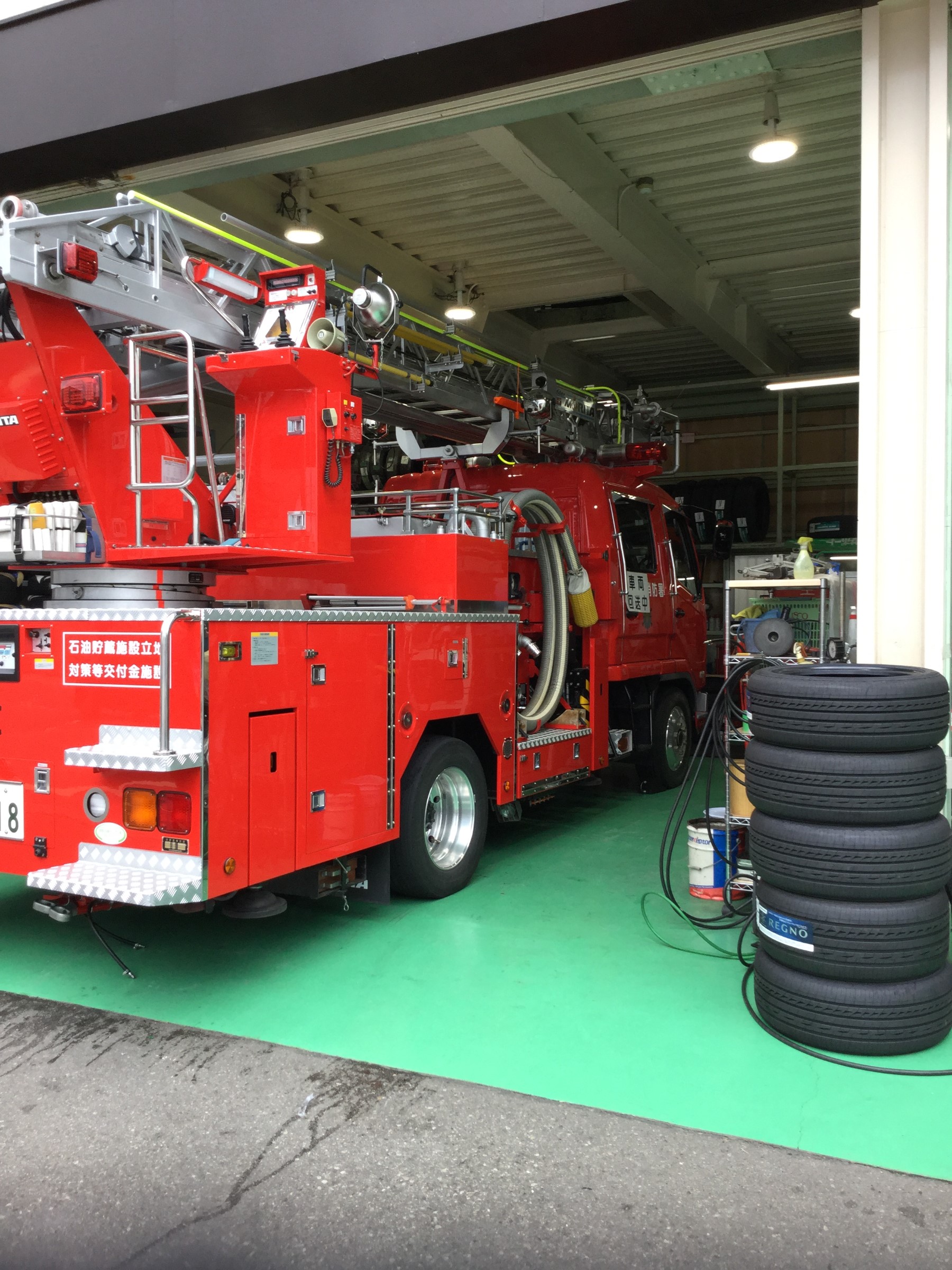 先日、街の安全の為に日々頑張ってる消防車のタイヤ交換をさせていただきました!