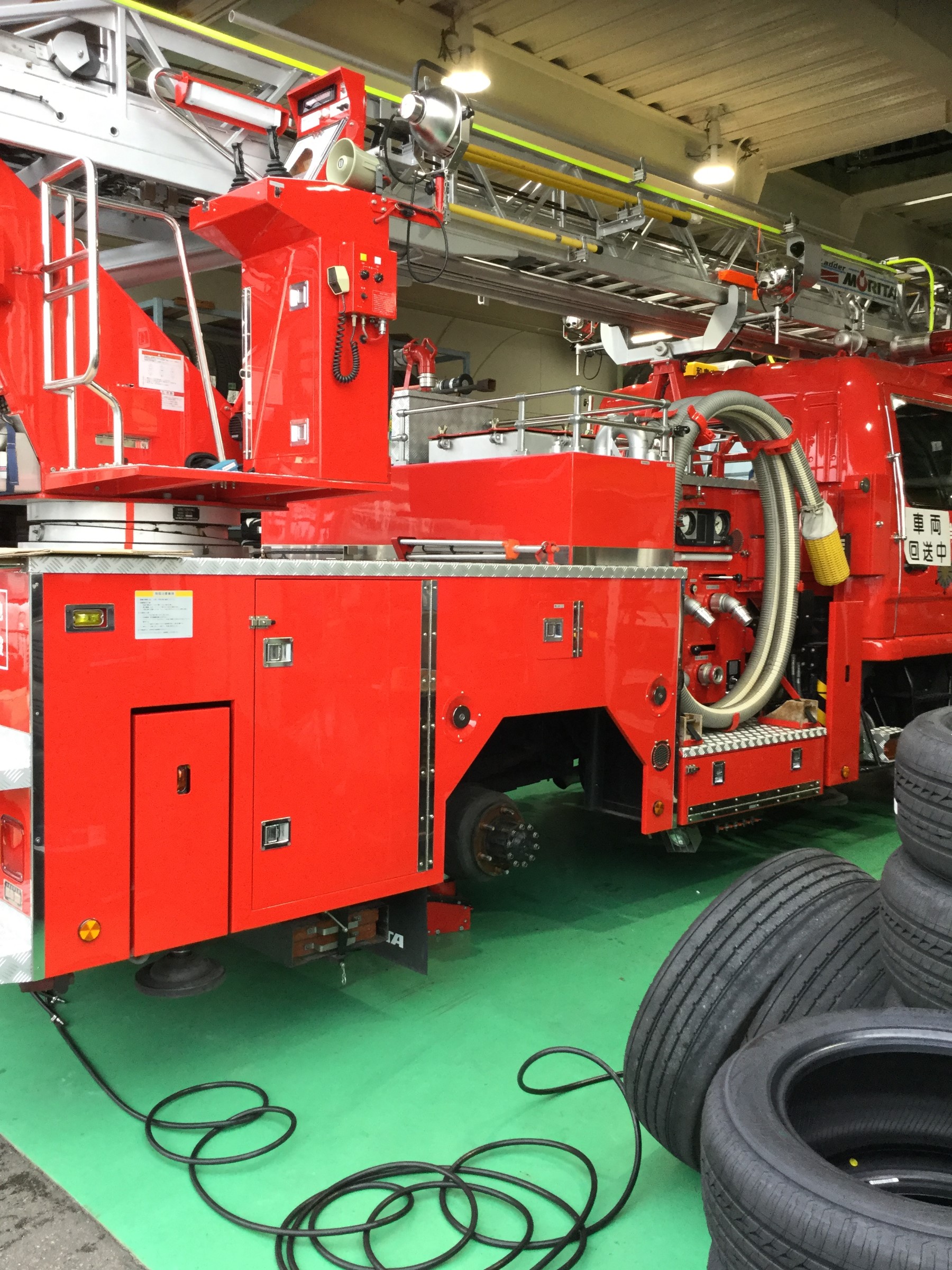 消防車 タイヤ交換