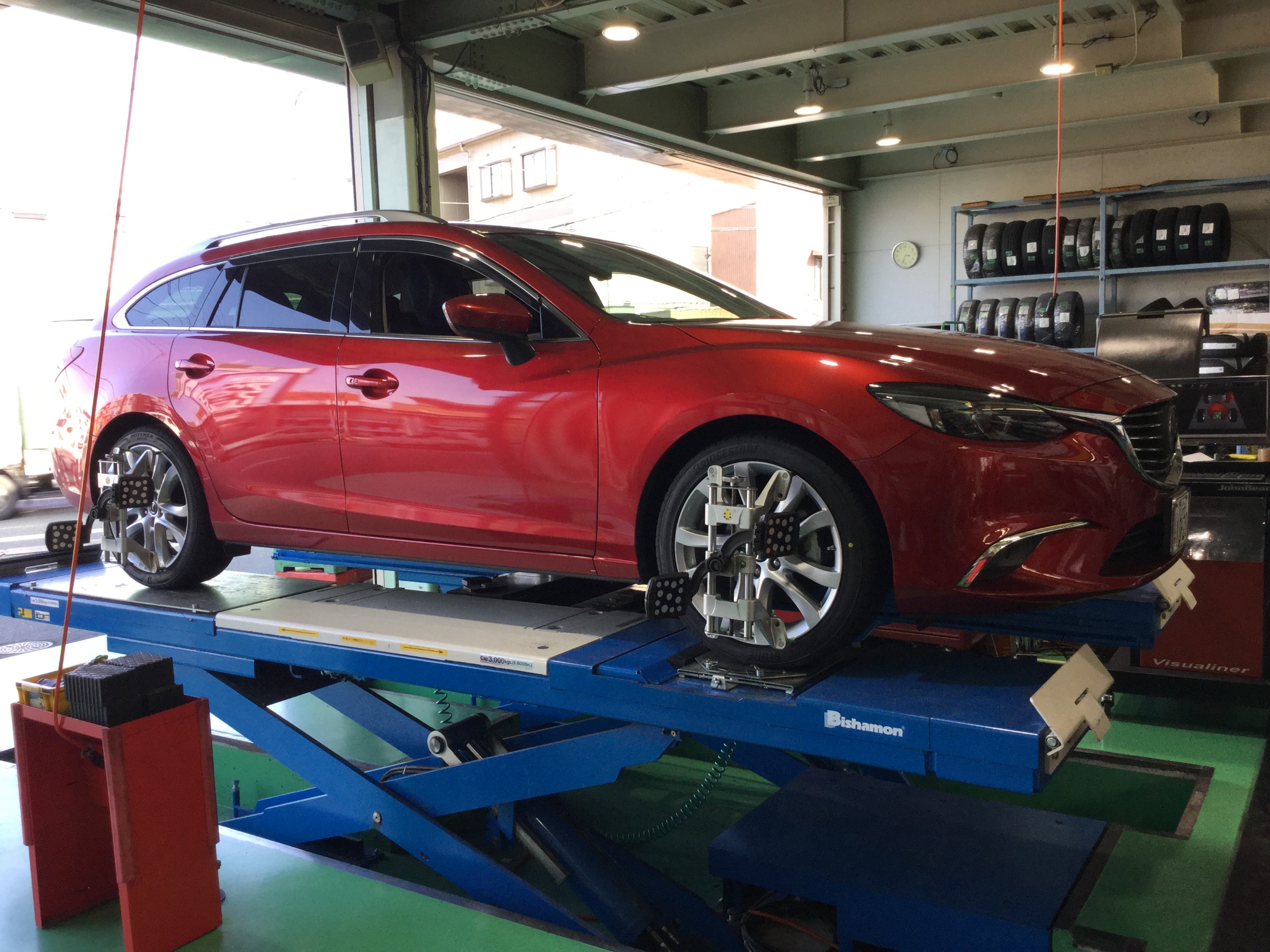 アライメント調整でタイヤ接地角度を適正値にバッチリ調整