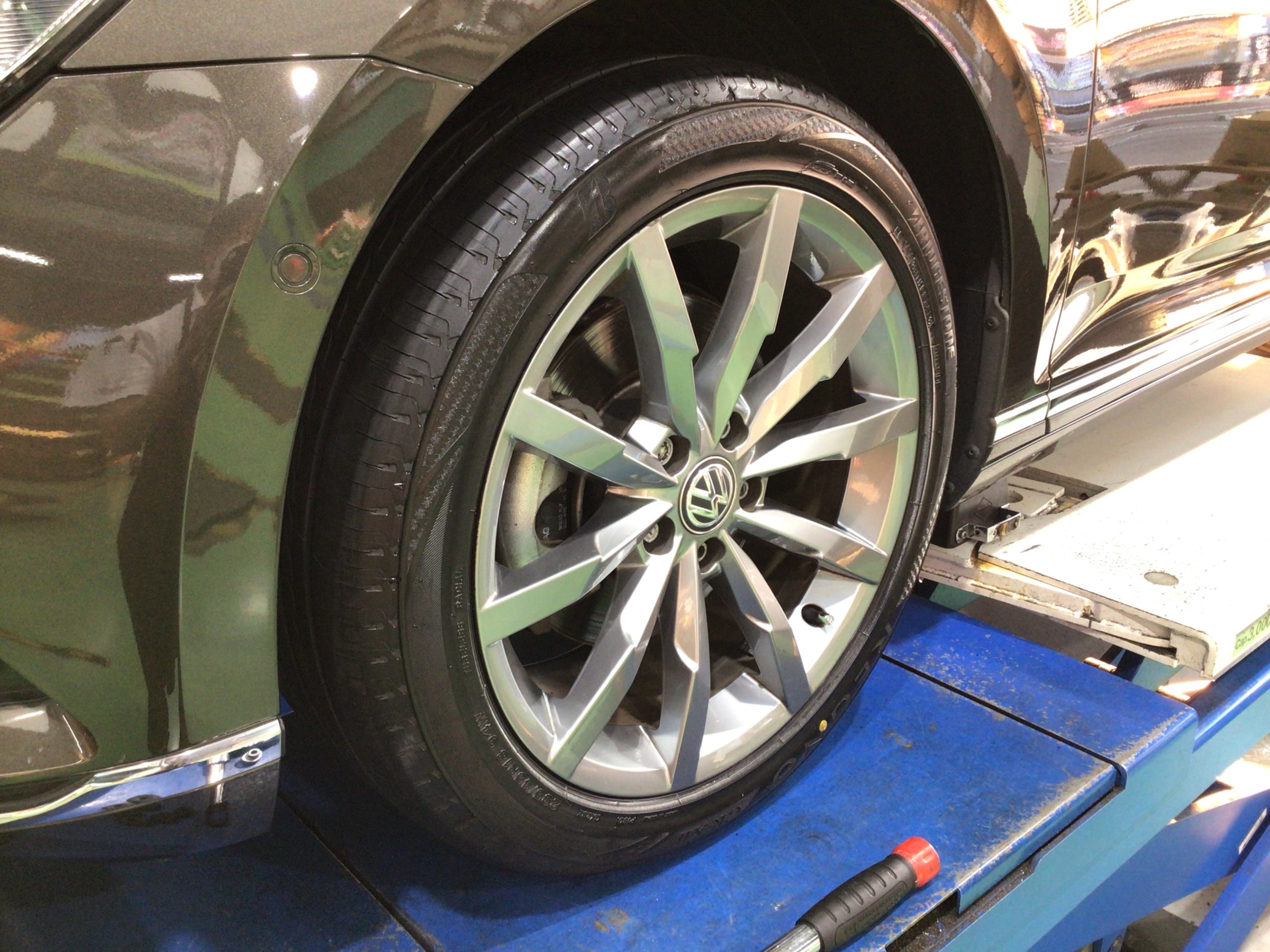 外車のタイヤ交換も当店へ「フォルクスワーゲン パサート」タイヤ交換【 レグノGR-XⅡ 235/45R18 】