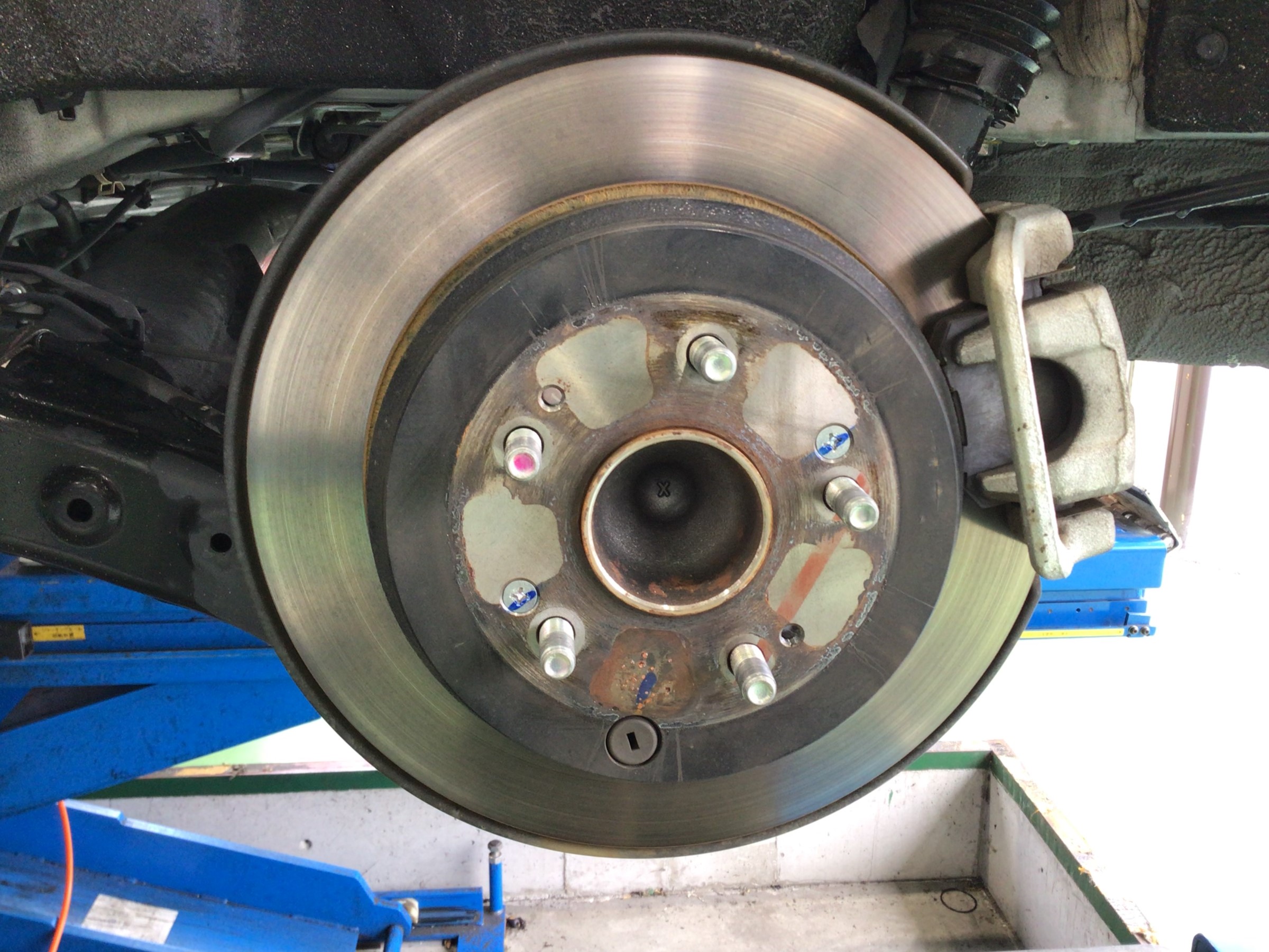 タイヤ交換と同時進行でハブの錆を落として