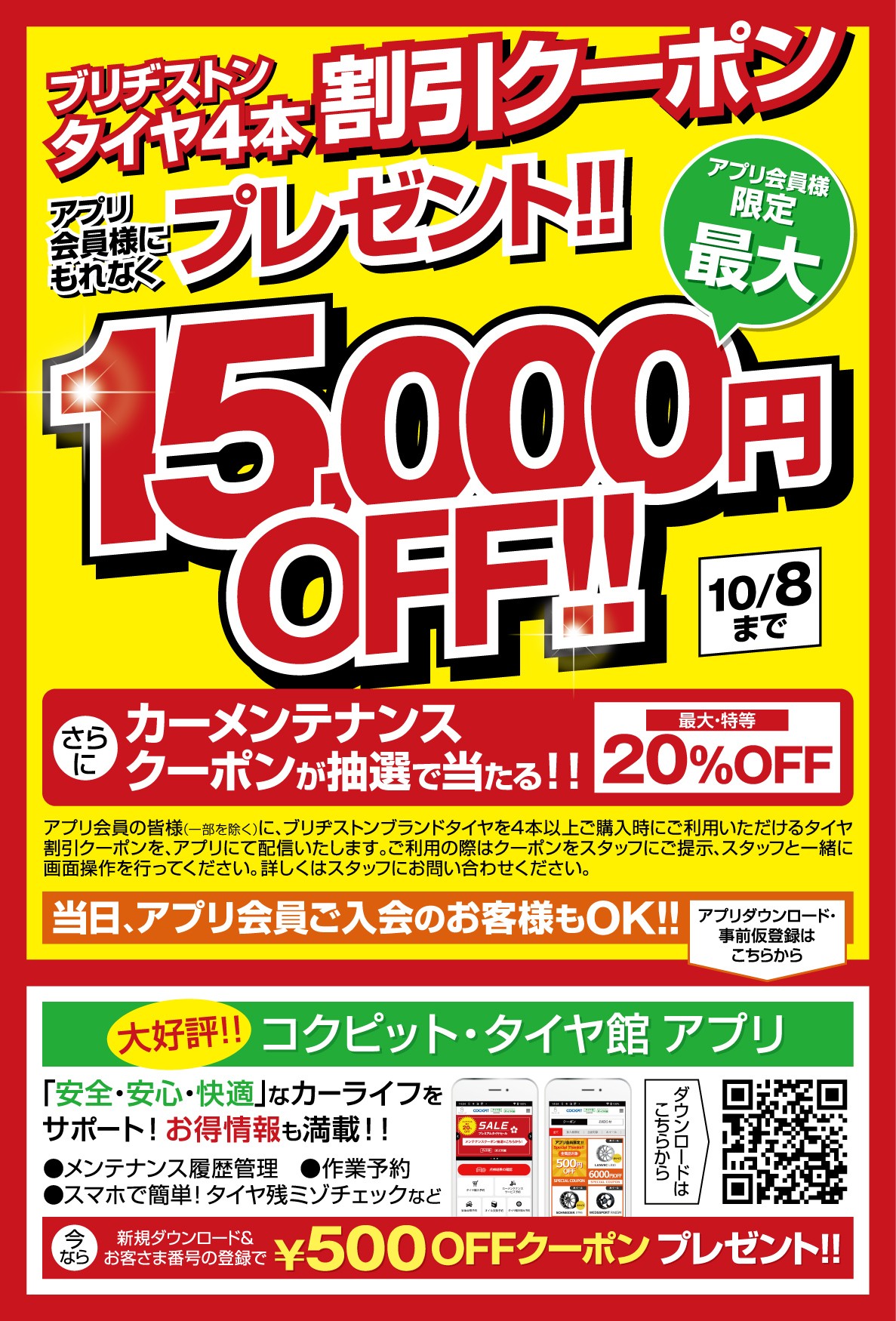 20インチ以上の方は最大15000円割引クーポン発行されます!