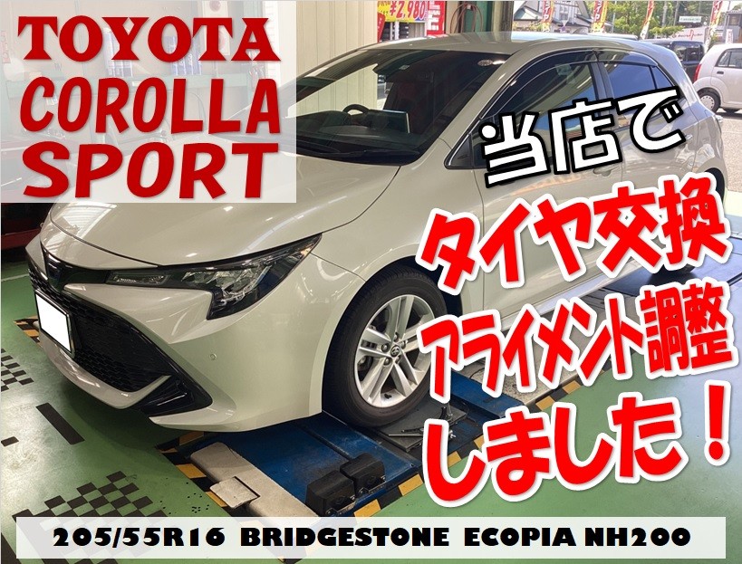 ゲリラ豪雨や台風が多くなる季節!ウェット性能を重視したタイヤがおススメ!「トヨタ カローラスポーツ」に【ECOPIA NH200 205/55R16&アライメント測定・調整】を交換・施工♪