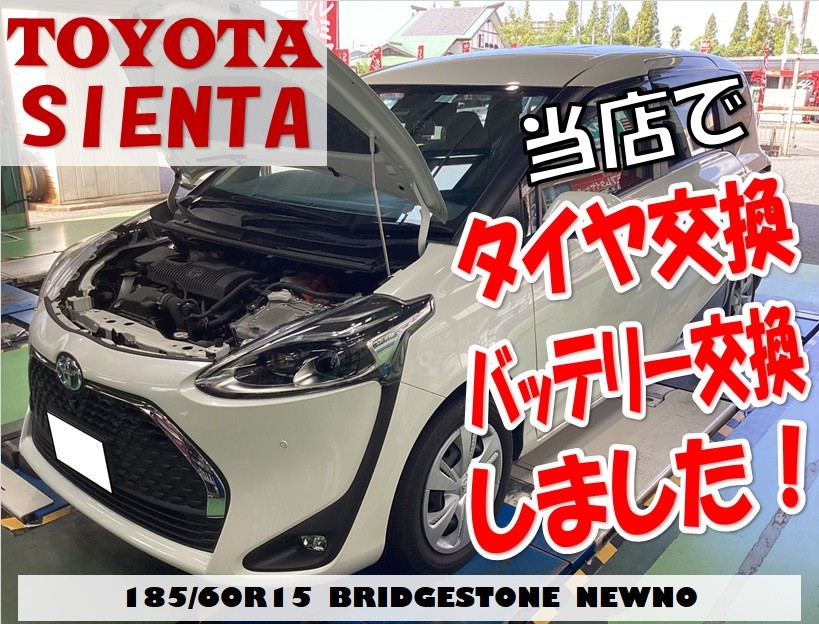 ブリヂストンのNEW(ニュー)NORMAL(ノーマル)タイヤ♪【NEWNO ニューノ 185/60R15】を「トヨタ シエンタ」に装着!ご一緒にバッテリーも交換しました!
