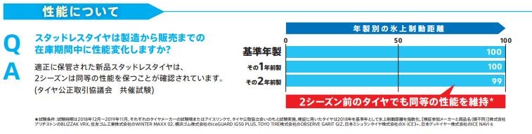 今年の製造のタイヤと性能は「同等」と検査でも