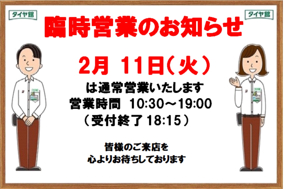 本日2月11日(火祝)は臨時営業日してます٩( 'ω' )و♪