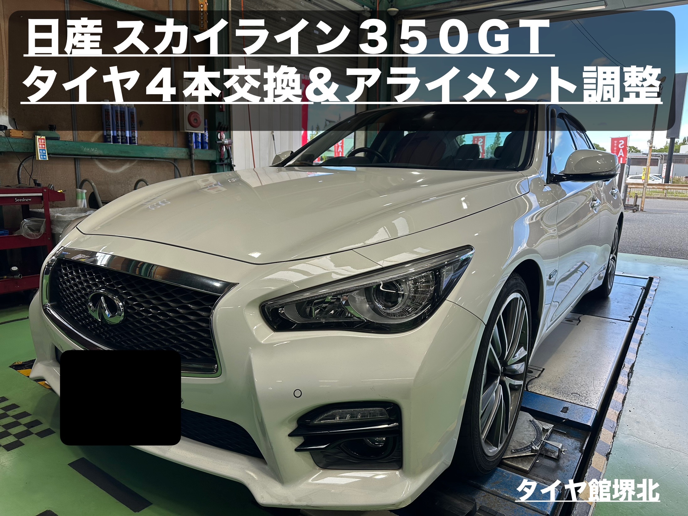 日産 スカイライン350GT タイヤ4本交換&アライメント調整 ブリヂストン POTENZA S001RFT 245/40RF19 94W