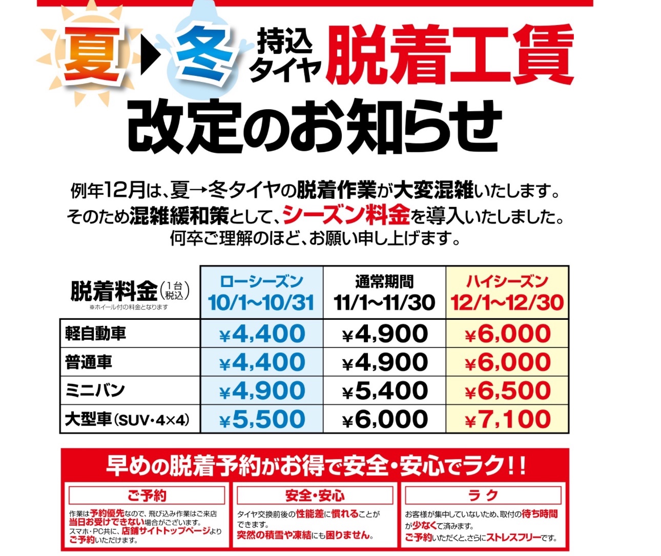 【お得期間!】スタッドレスタイヤ履き替えキャンペーン開催中!10月限定で脱着工賃プライスダウン!