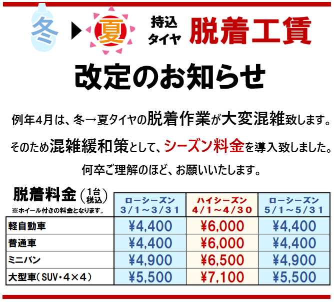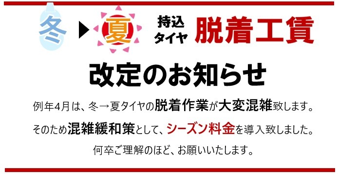 お早めにご予約・作業させていただければローシーズン価格で履き替えが可能です。
