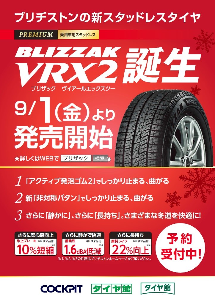 乗用車用スタッドレスタイヤ「BLIZZAK VRX2」新発売!!