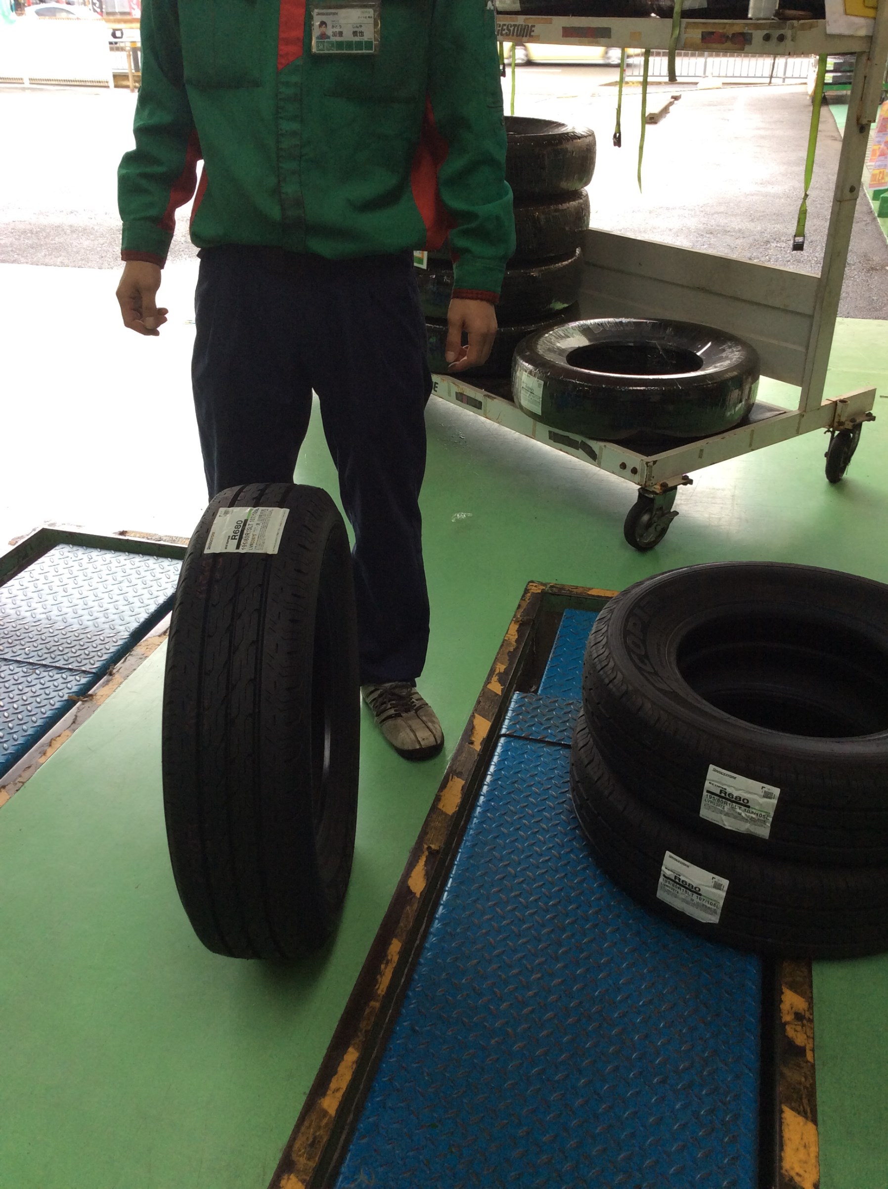 今日は朝からバン用タイヤ・ホイールの入荷&展示を行っています。