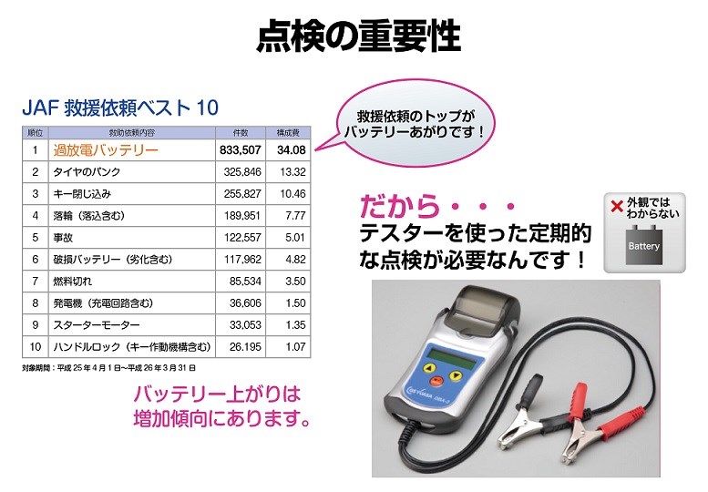 その無料点検の項目の1つでもある、バッテリーは車にとって最も重要な部品です。