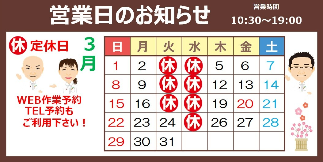 4月定休日のお知らせ