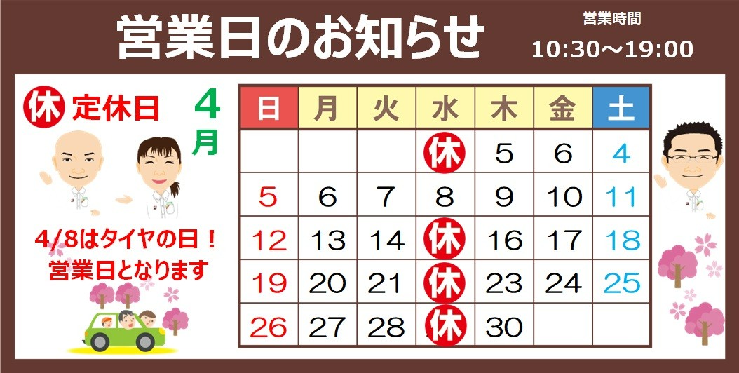 【4月8日(水)】はタイヤの日 営業いたします!