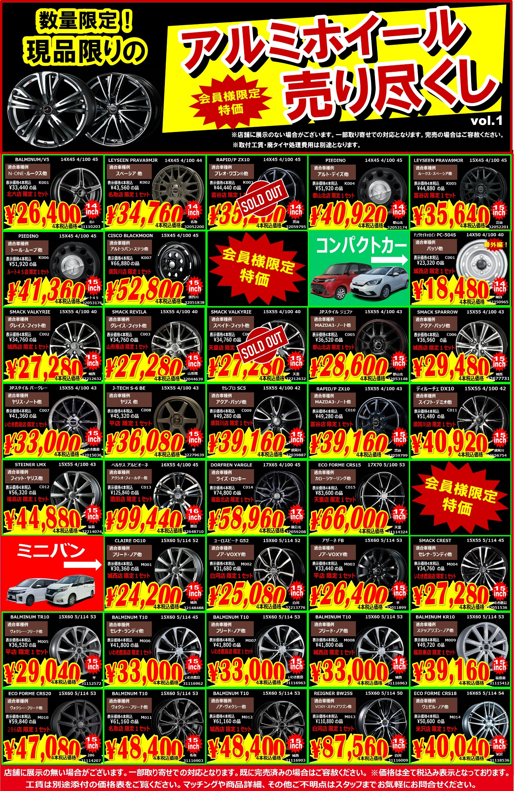 数量限定!現品限りの アルミホイール 売り尽くし!!!