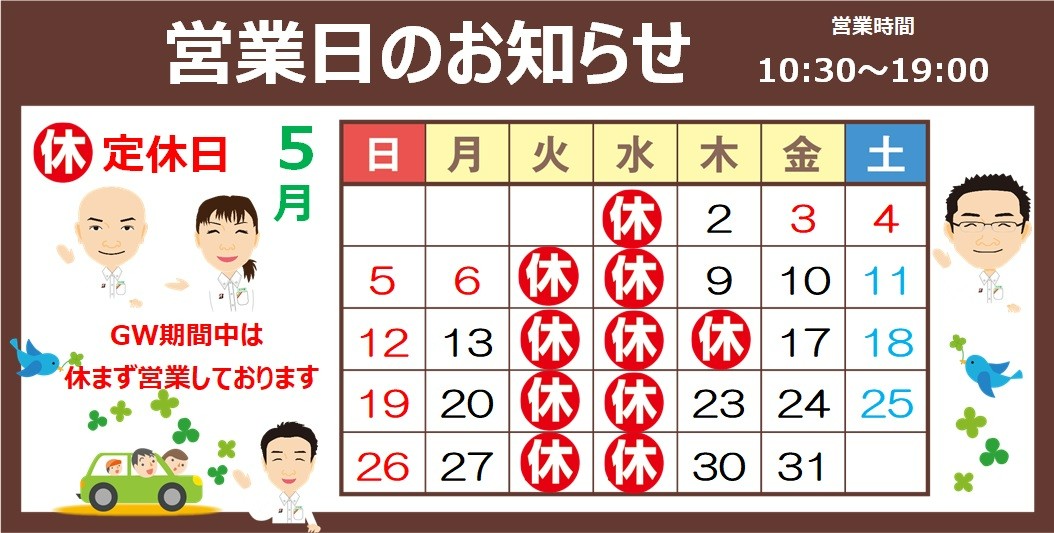 5月も皆様のご来店をスタッフ一同 お待ちしております♪