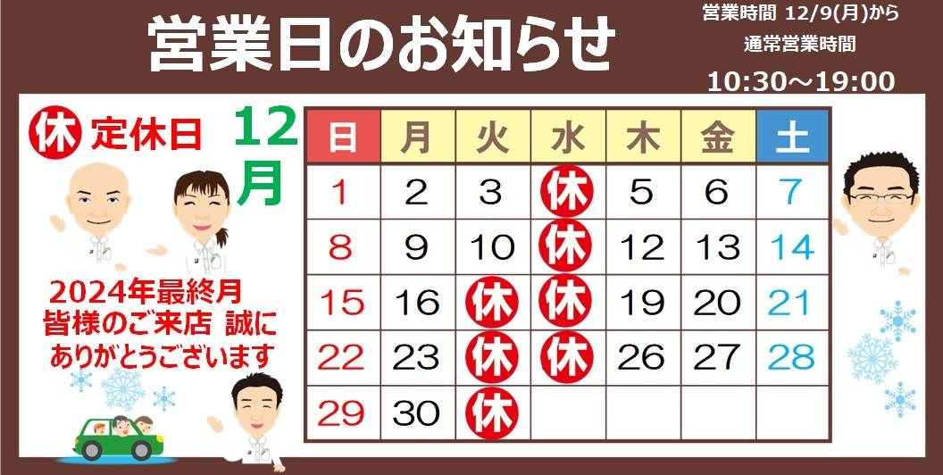 12/17(火) 12/18(水) 定休日のお知らせ