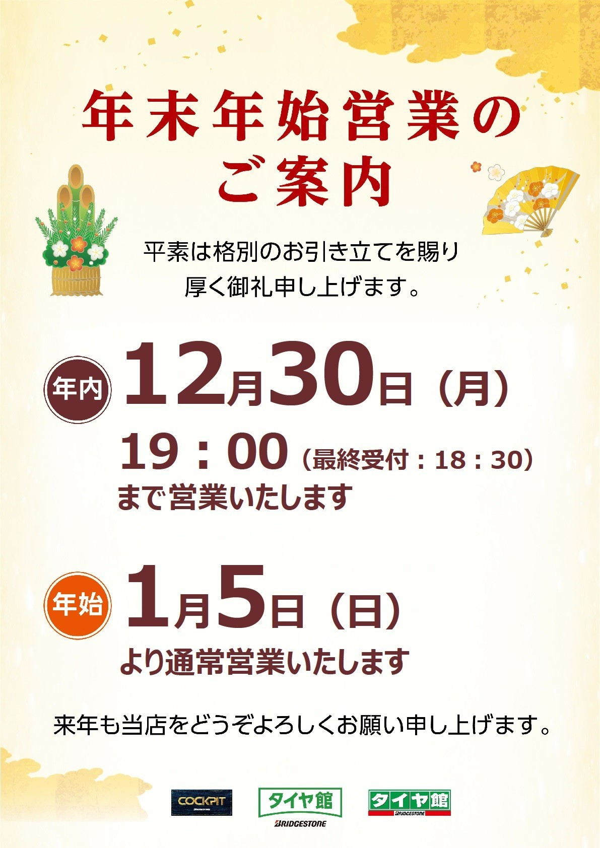 年末年始営業のお知らせ