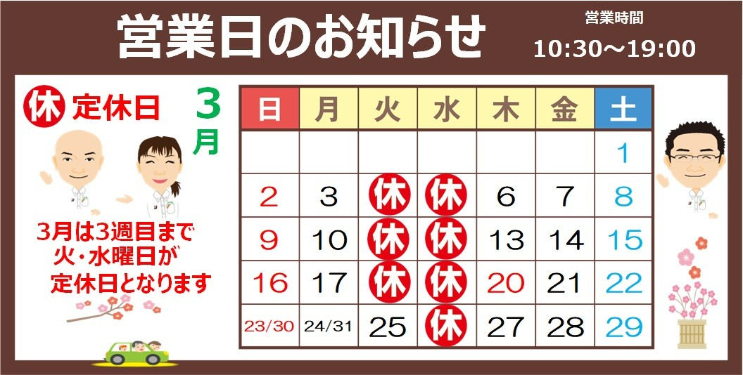 3月定休日のお知らせ