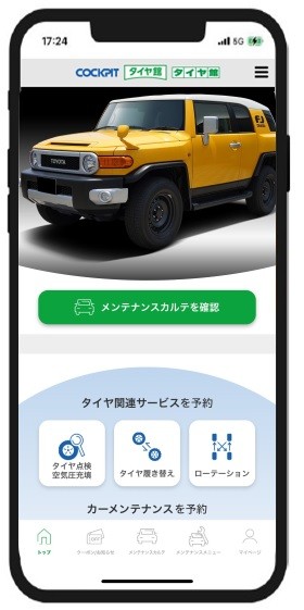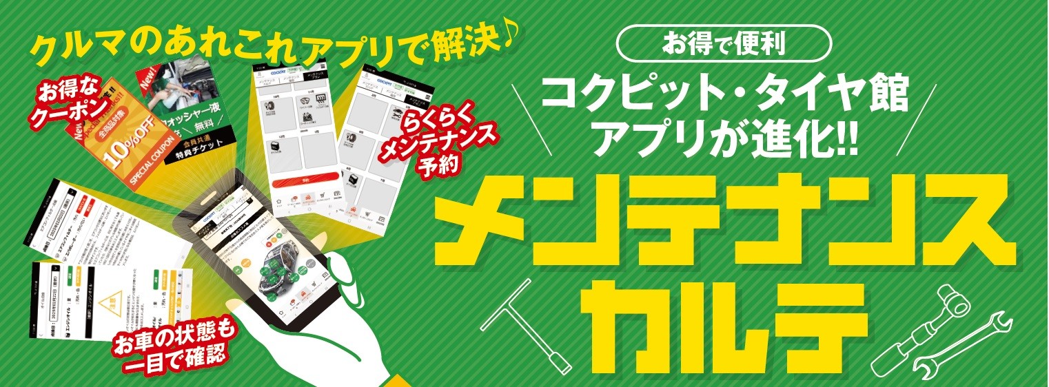 コクピット・タイヤ館アプリがよりお得で便利に進化「メンテナンスカルテ」