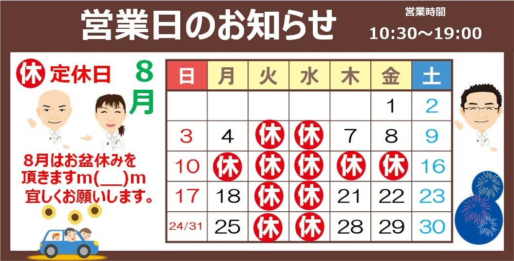 8月11日(月)~15日(金)臨時休業のお知らせ